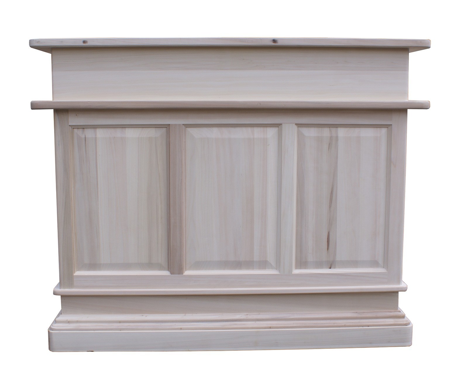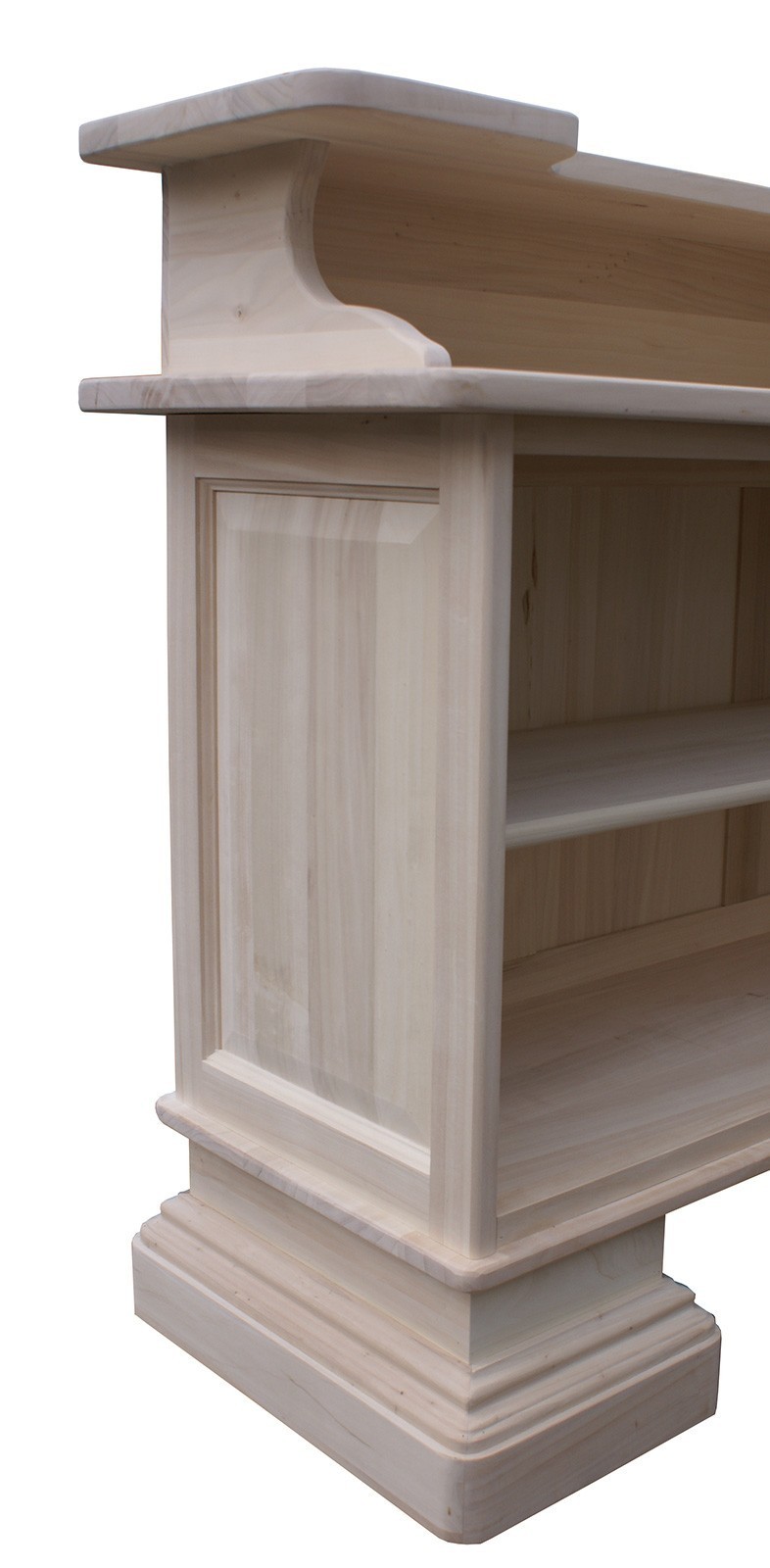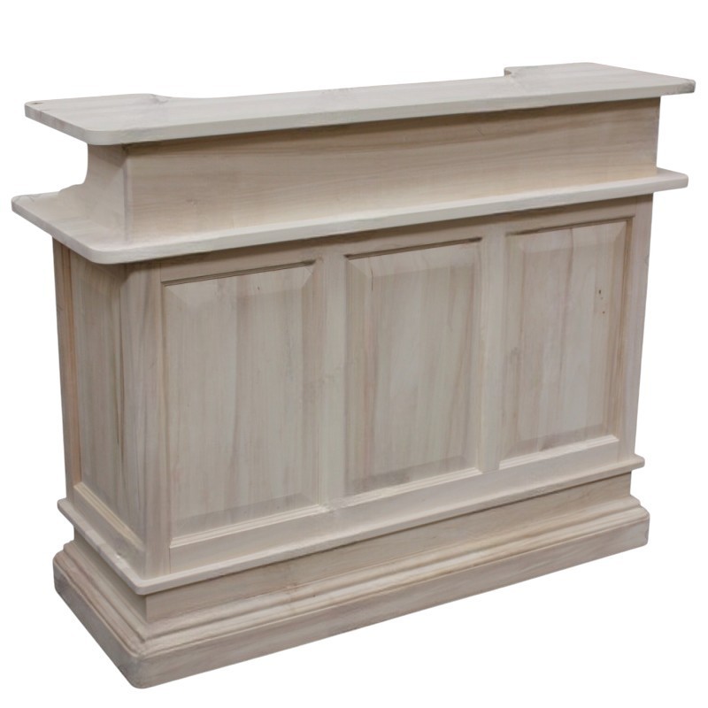 Mobile bar perfetto per arredare un’ampia sala da pranzo o una taverna in stile classico o rustico. La parte anteriore è completamente chiusa da pannelli bugnati, la parte rivolta verso il barman è invece dotata di due vani a giorni oltre al piano d’appoggio.