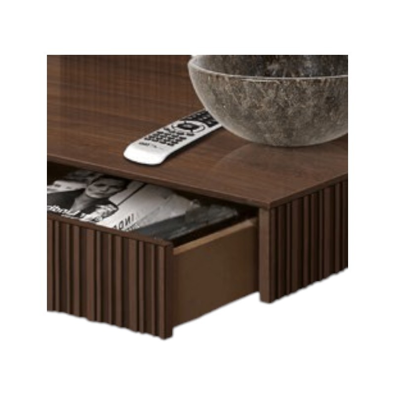 Tavolino di design grazie alle sue linee geometriche per aggiungere un tocco di eleganza e originalità alla casa. Elemento d' arredo funzionale e spazioso grazie al suo cassetto per riporre oggetti. Questo tavolino è adatto per la zona del salotto abbinandosi in maniera armoniosa alla stessa linea del porta televisore.