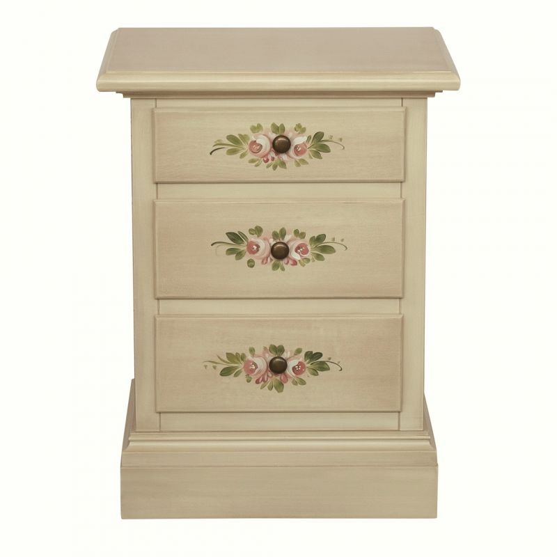 Comodino 3 cassetti legno shabby avorio anticato decori 50x38x65