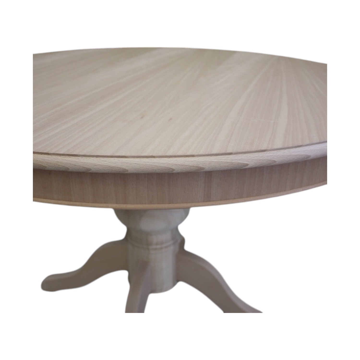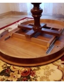 tavolo tondo con gambone centrale e gambe sagomate, diametro 100 cm con 1 allunga da 40 cm a scomparsa con apertura a planare