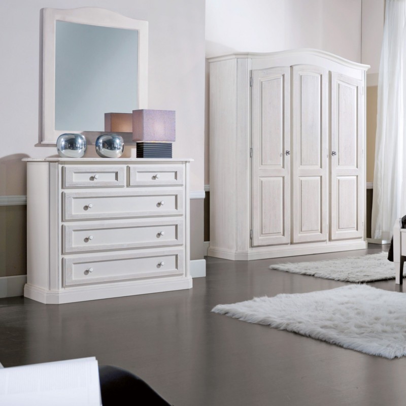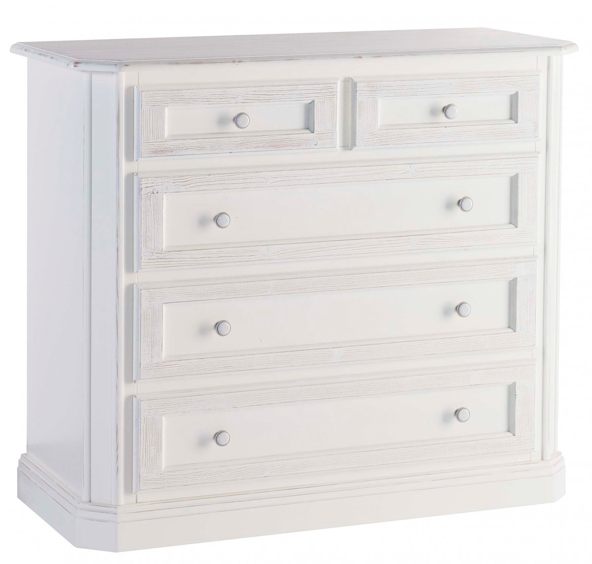 Cassettiera 5 cassetti legno abete shabby bianco consumato 116X51X101 (308)