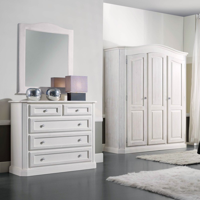 Gruppo cassettiera e due comodini legno shabby bianco spazzolato