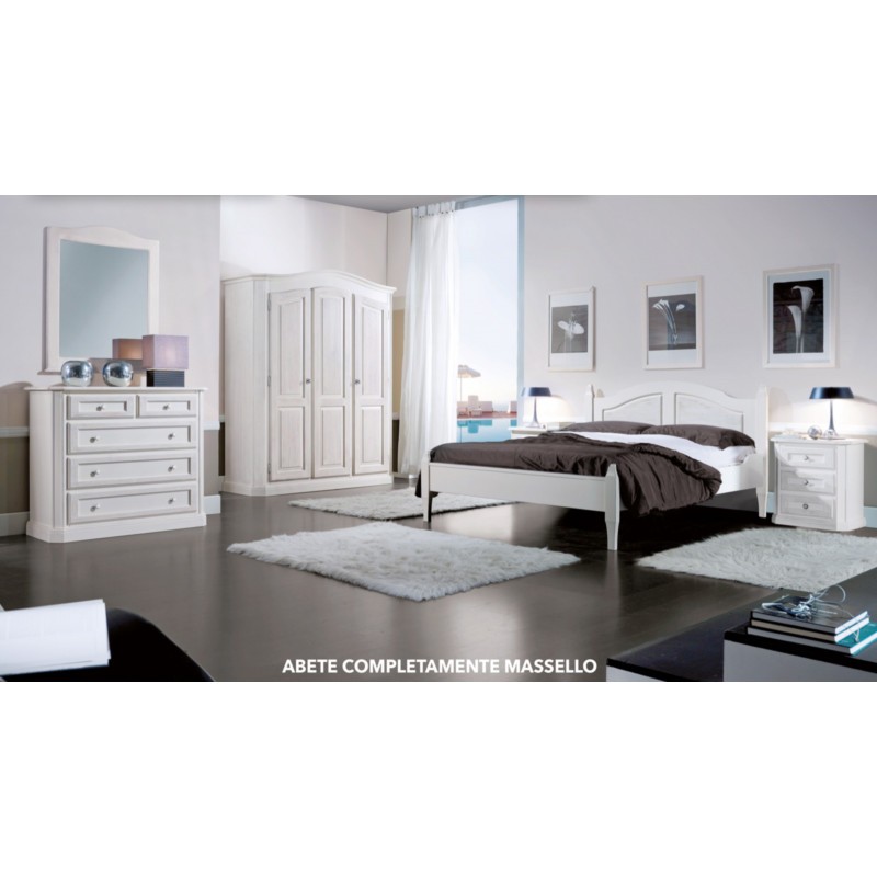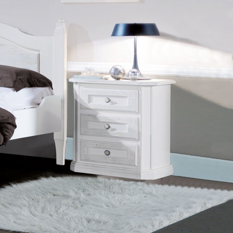 MOBILI 2G - Gruppo cassettiera e due comodini legno shabby bianco spazzolato