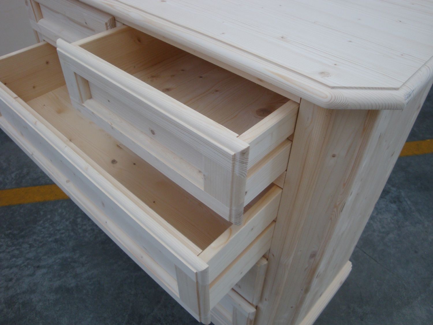 Struttura - piano - cornici - gambe e facciate dei cassetti - cappello - fondo dei cassetti: legno massello di abete