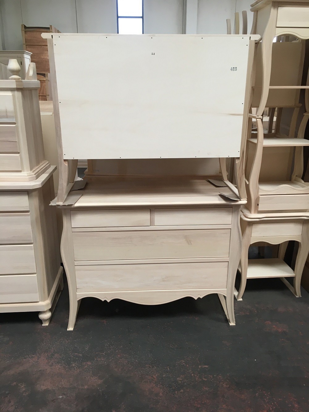 - Struttura - piano - cornici - gambe e facciate dei cassetti - cappello - fondo dei cassetti: legno massello di pioppo.