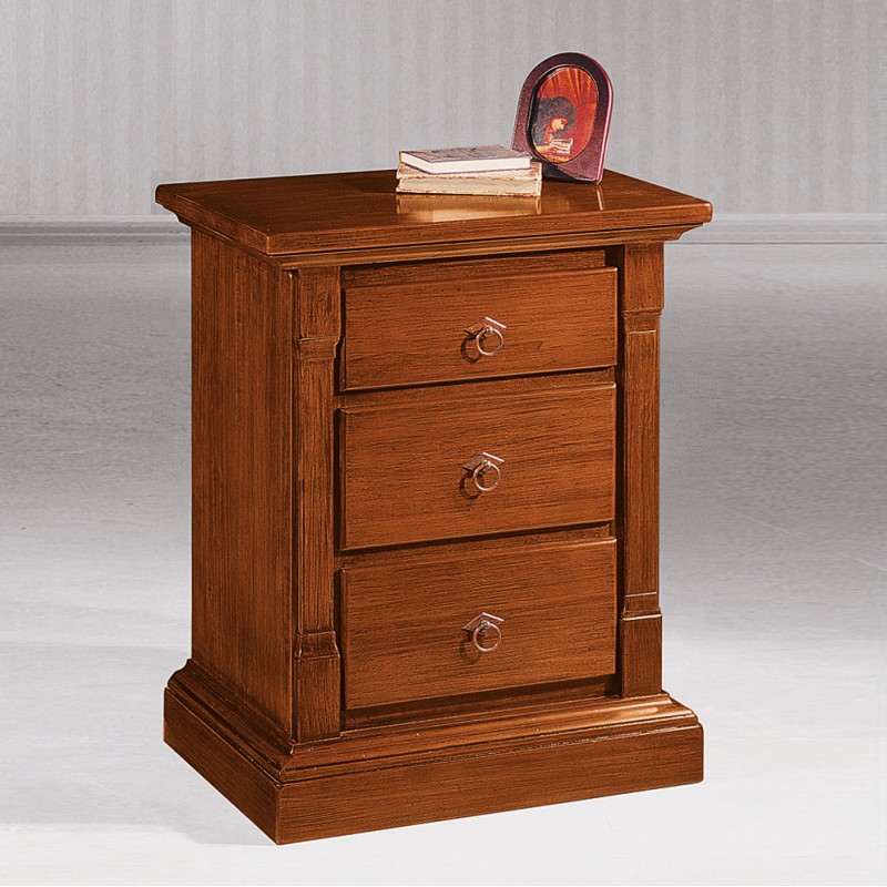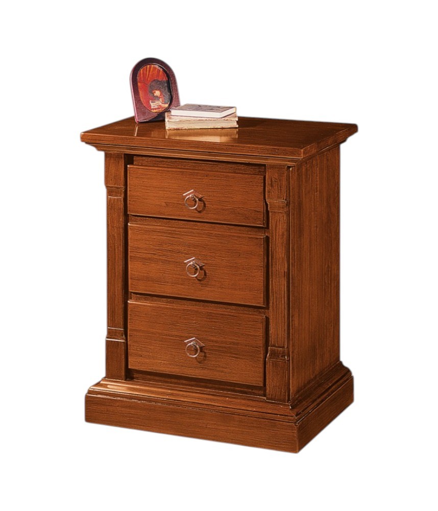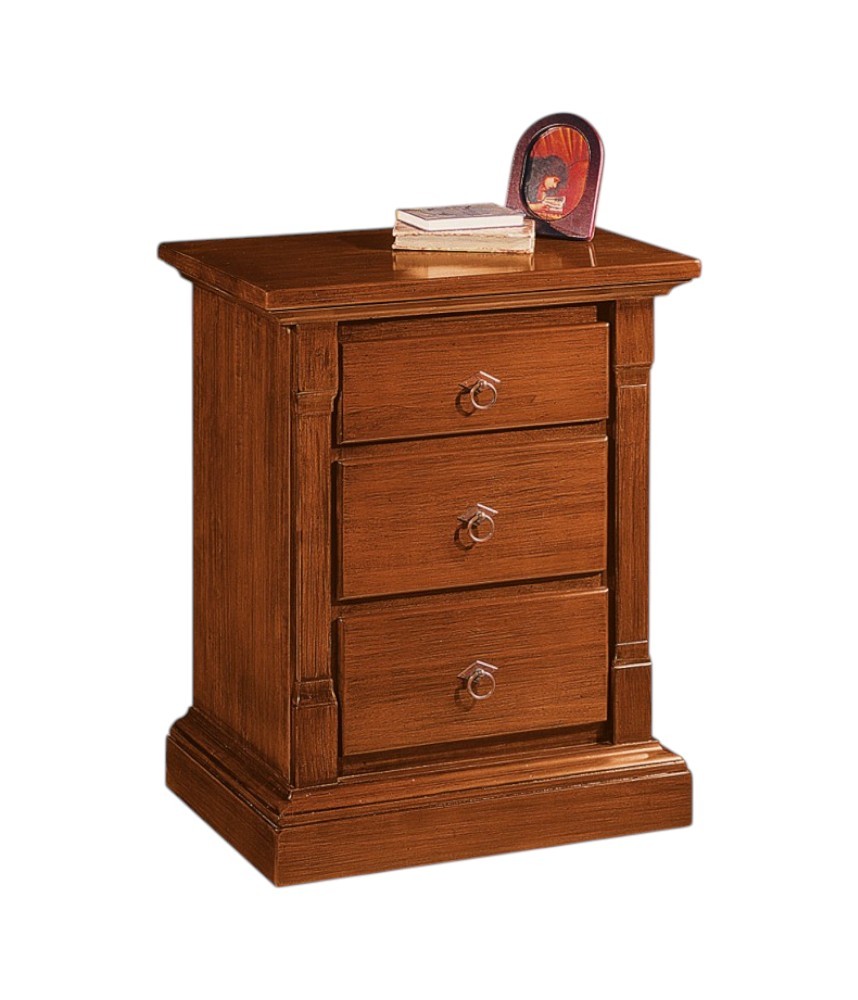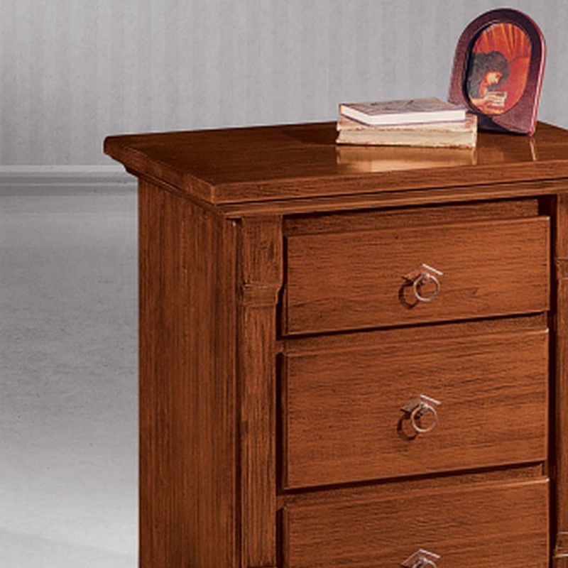 Comodino 3 cassetti arte povera capitello legno tinta noce 60x40x72 (416)