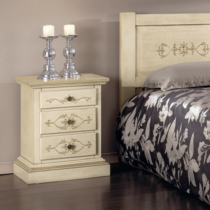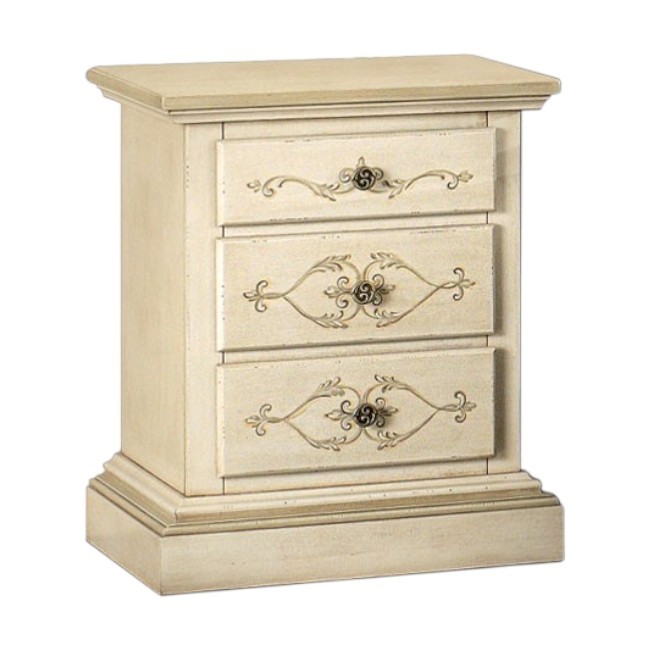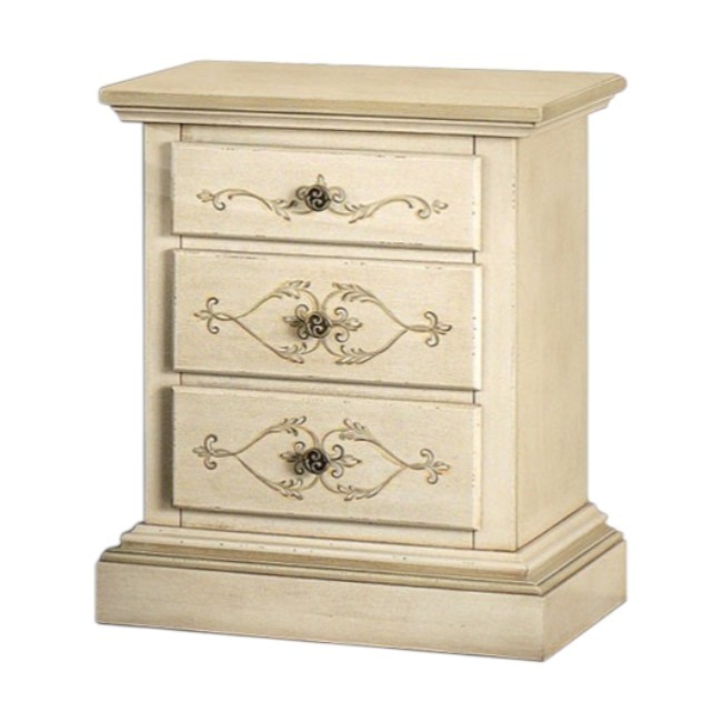 Comodino 3 cassetti legno shabby avorio anticato decorato filo verde 51x40x64 (1471)