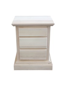 Comodino in stile shabby costruito in legno rendendo il mobile solido e allo stesso tempo elegante. Dotato di 3 cassetti con zoccolo a terra, Ideale per la zona giorno, per l'entrata per riporre il telefono o come comodino per la zona notte. Unico nel suo genere con i suoi decori verdi dando un tocco a un' atmosfera d'altri tempi .