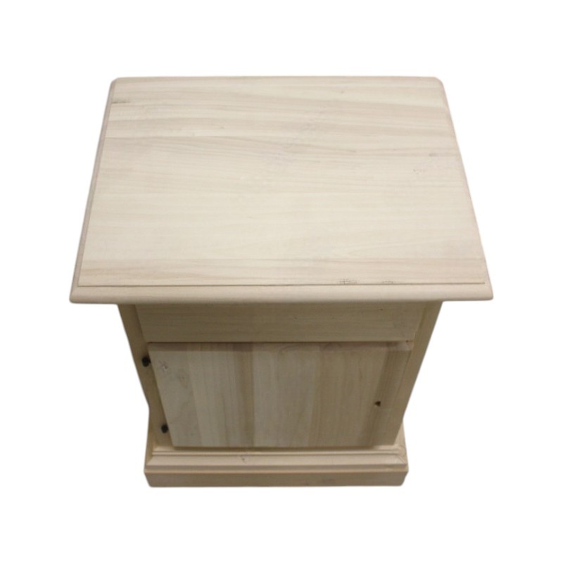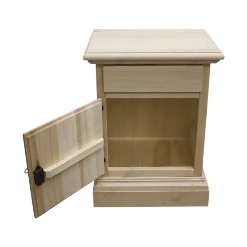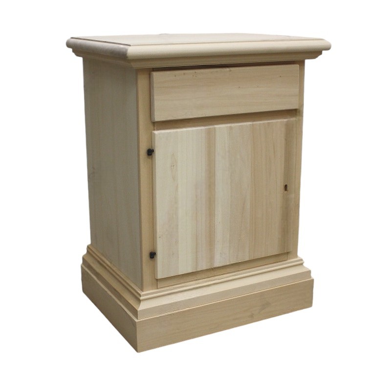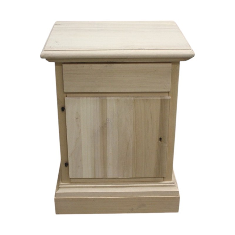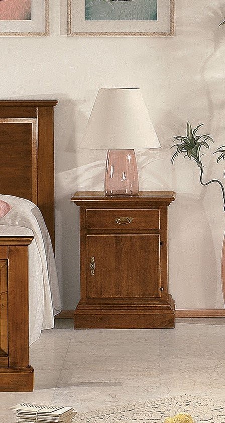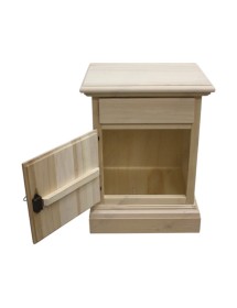 Comodino in arte povera costruito in legno rendendo il mobile solido e allo stesso tempo elegante. Dotato di 1 cassetto e 1 porta con serratura per riporre all'interno biancheria intima, calzetti e indumenti. Ideale per la zona notte o come complemento di arredo.