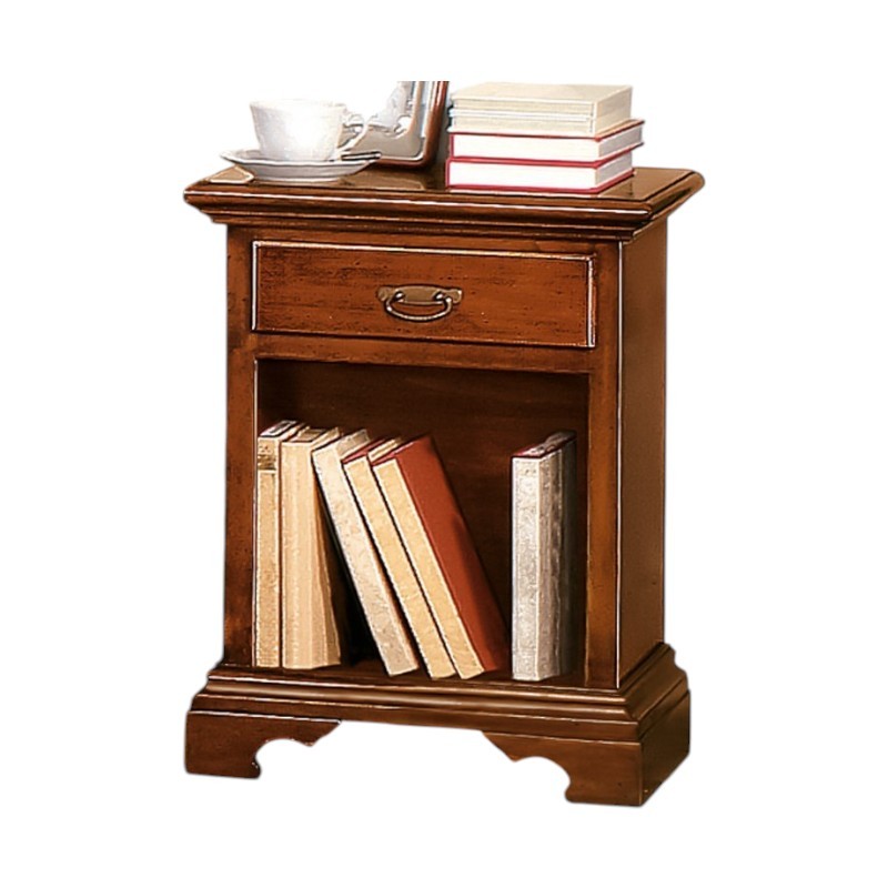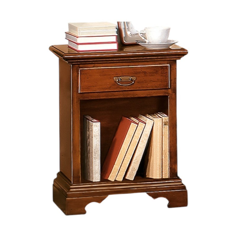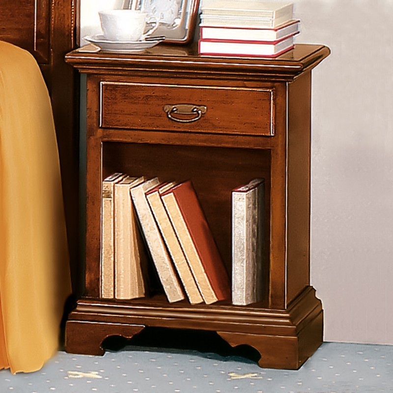 Comodino arte povera 1 cassetto 1 vano a giorno legno tinta noce 50x38x65 (470)