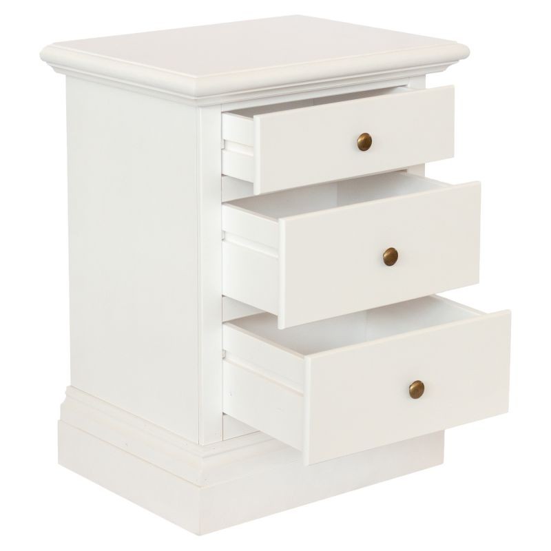Comodino 3 cassetti arte povera legno bianco 50x38x65