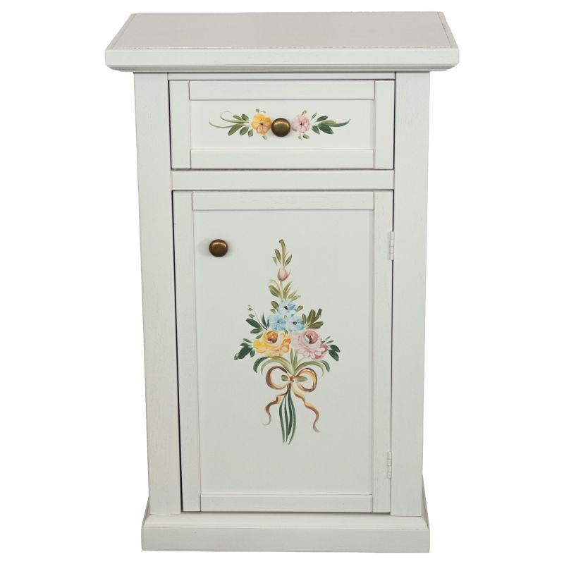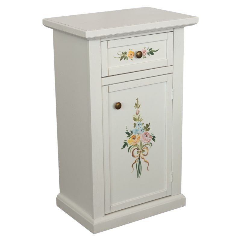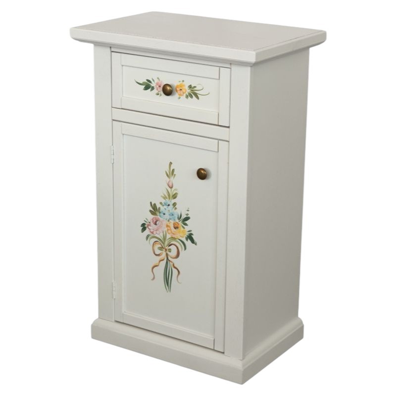 Porta telefono 1 anta 1 cassetto shabby legno bianco decori 45X30X75