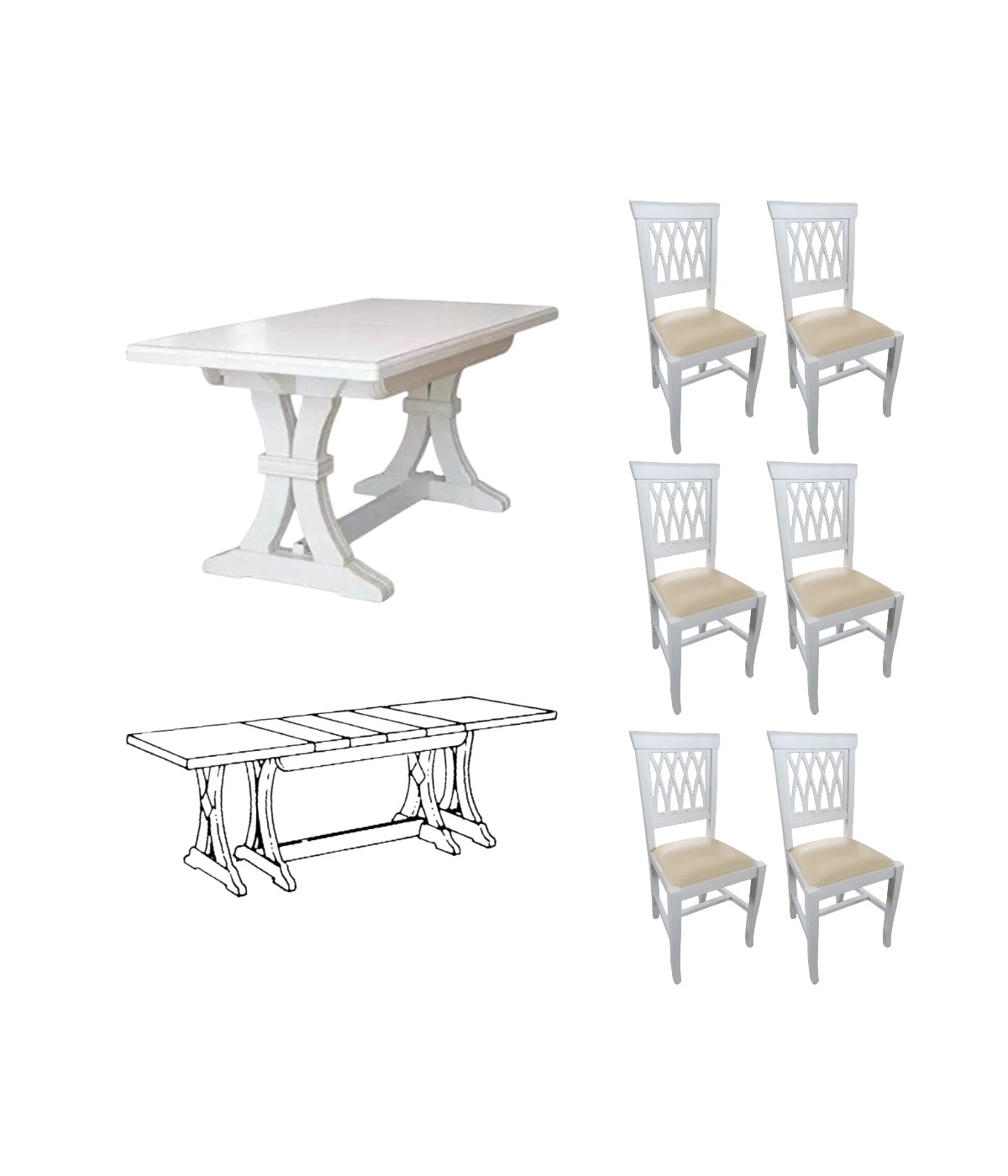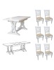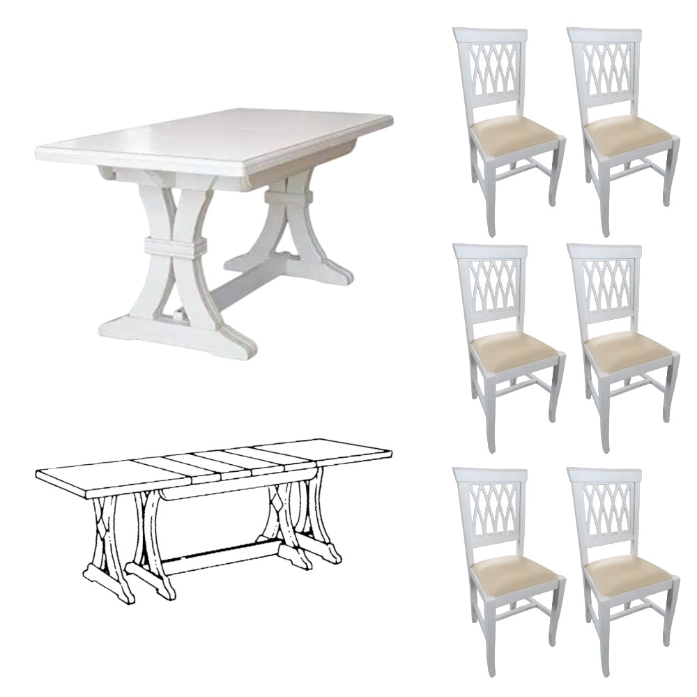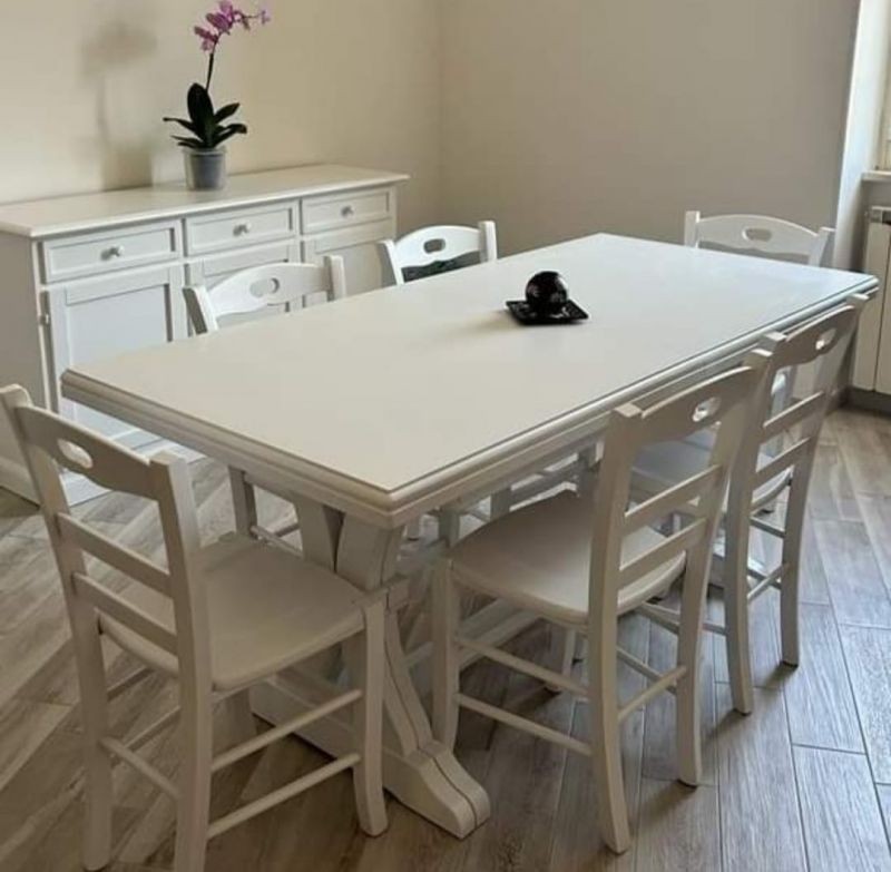 Set tavolo fratino bianco 160X85 180x85 180x100 arte povera allungabile con 6 sedie legno seduta imbottita