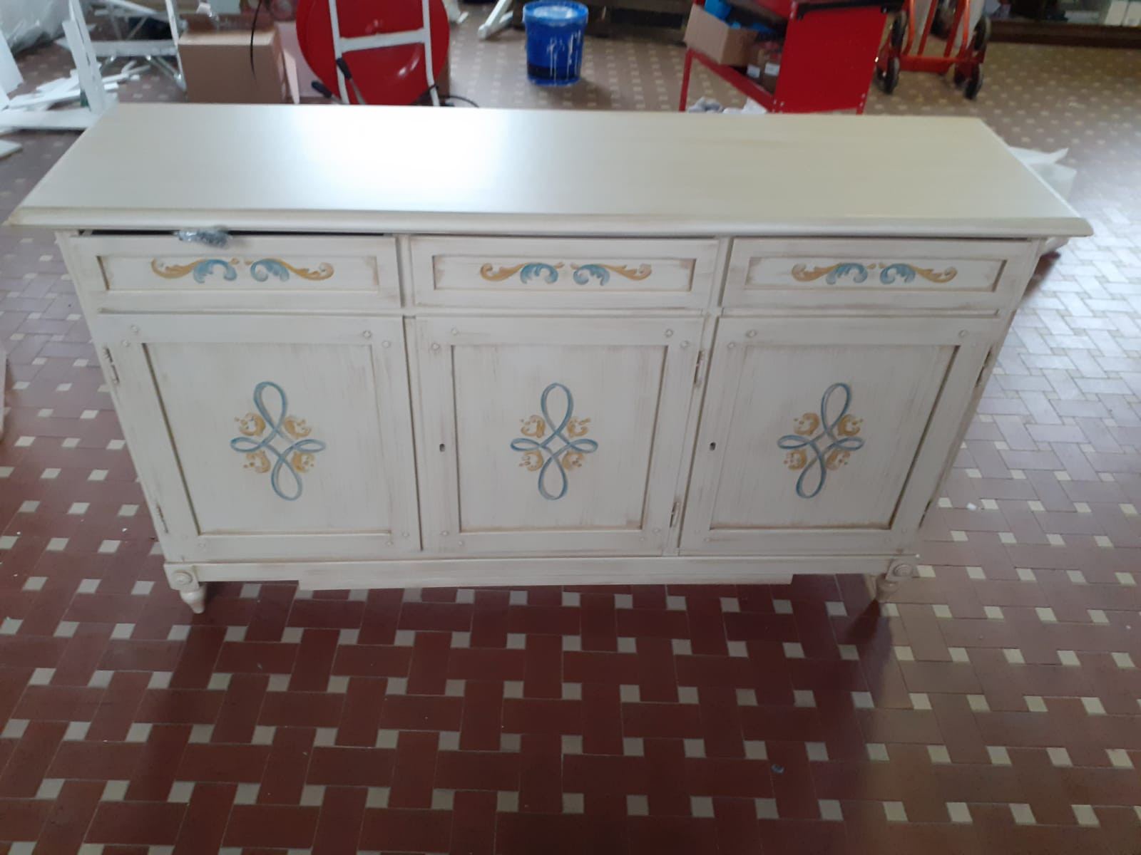 Tipologia: credenza 3 porte 3 cassetti con decori e gambe a cipolla