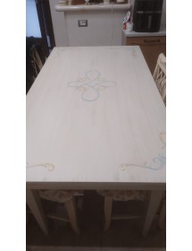 TAVOLO 160X85 LACCATO AVORIO PENNELLATO CON DECORI