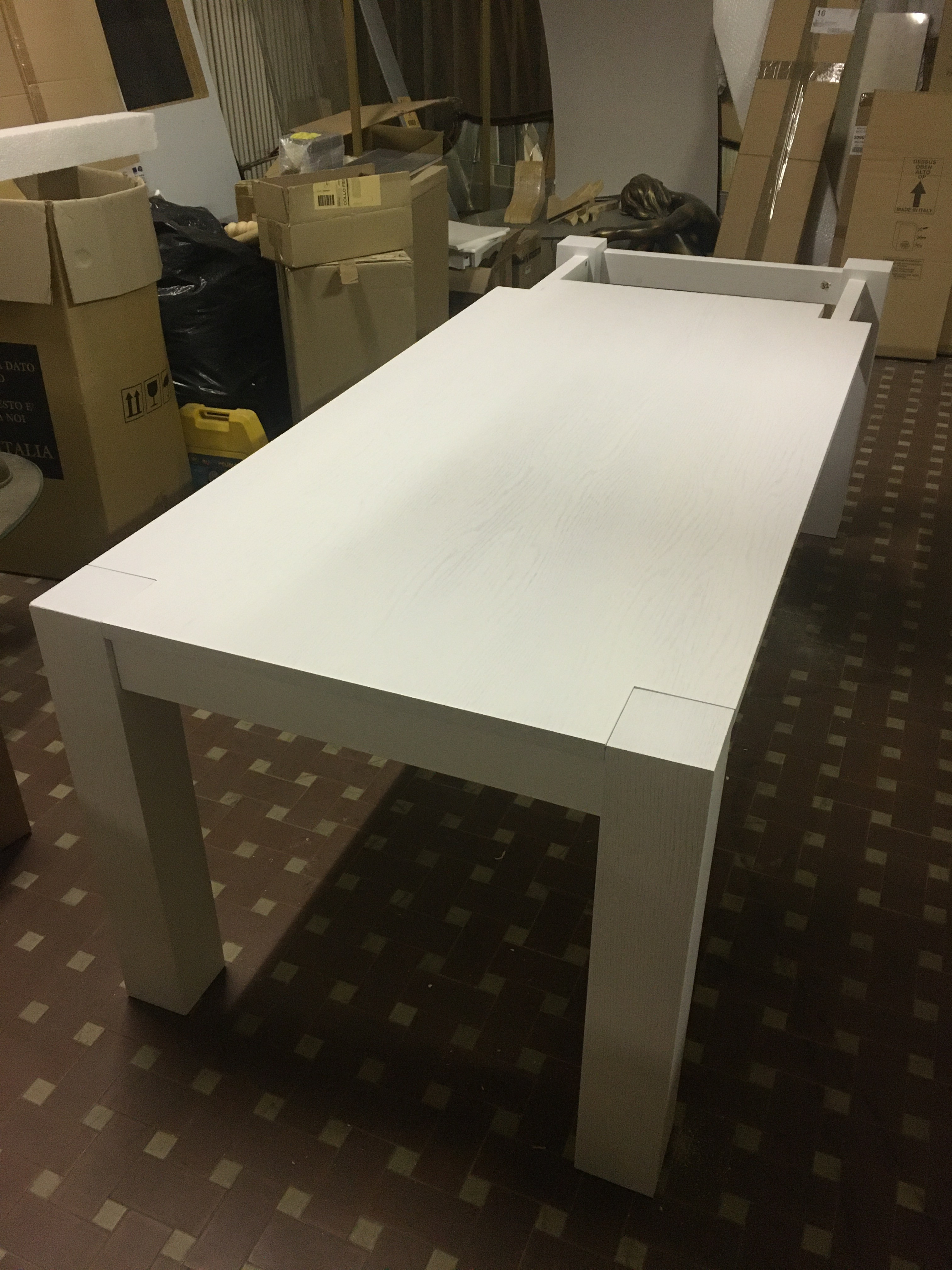 TAVOLO RETTANGOLARE ALLUNGABILE ROVERE LACCATO BIANCO L.140 P.90 H.78 (851)