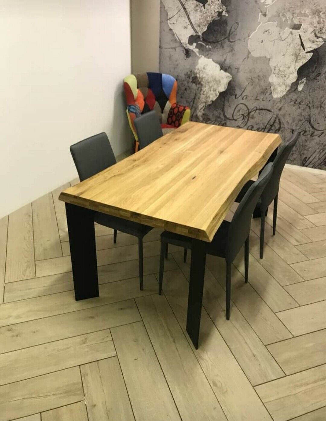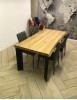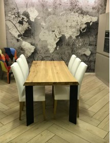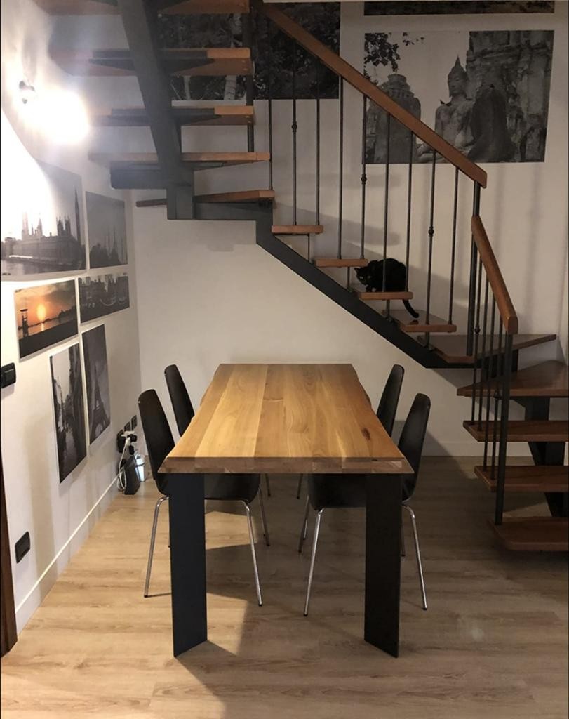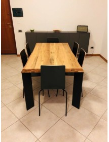 Tavolo Fisso in legno massello con spessore 6 cm e gambe in metallo.