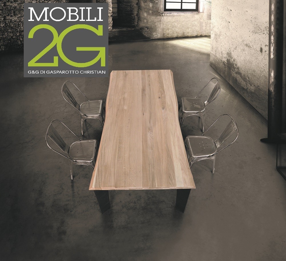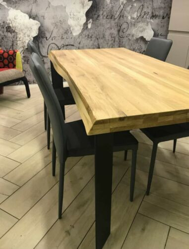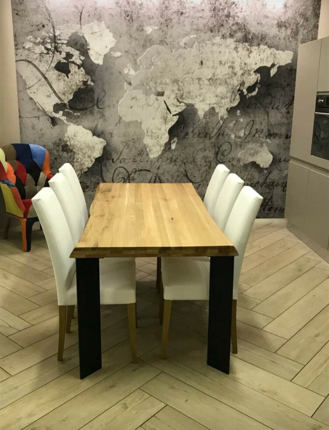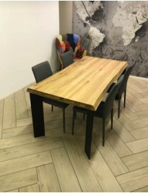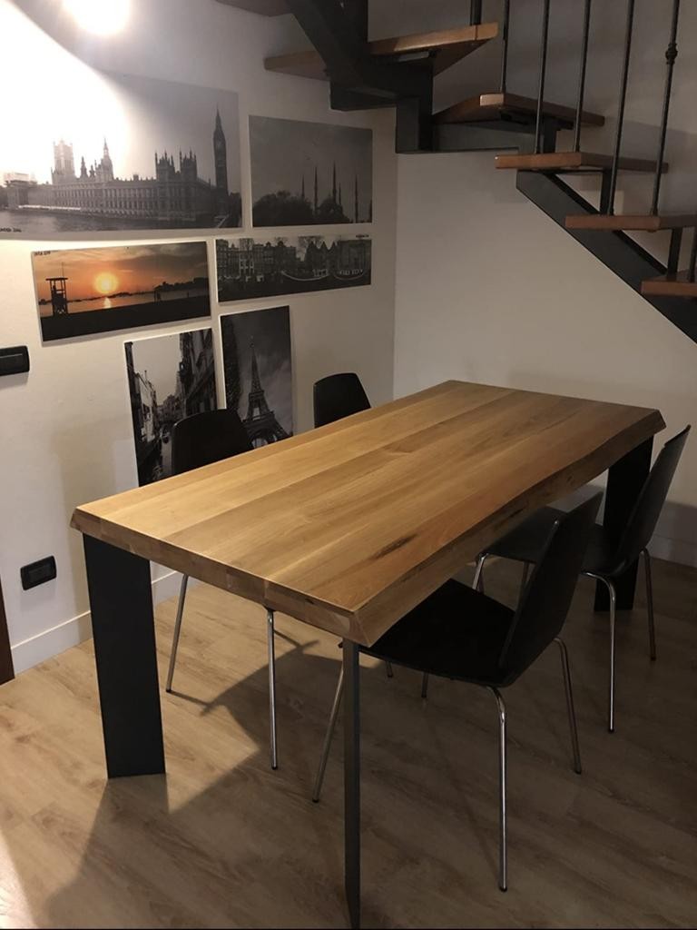 Tavolo Fisso in legno massello con spessore 4 cm e gambe in metallo.