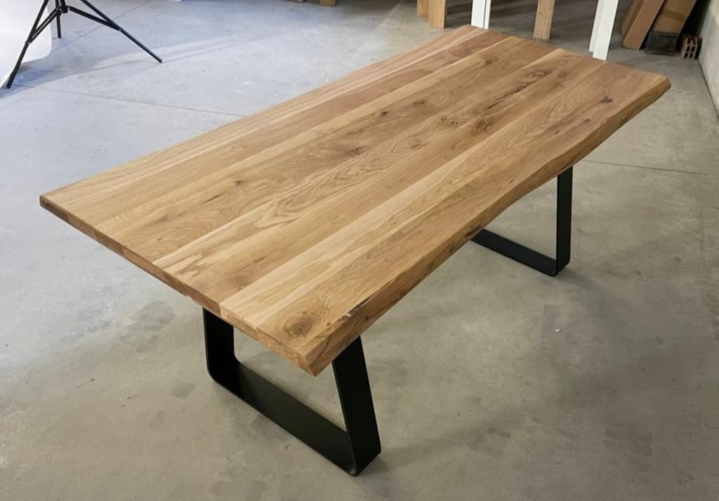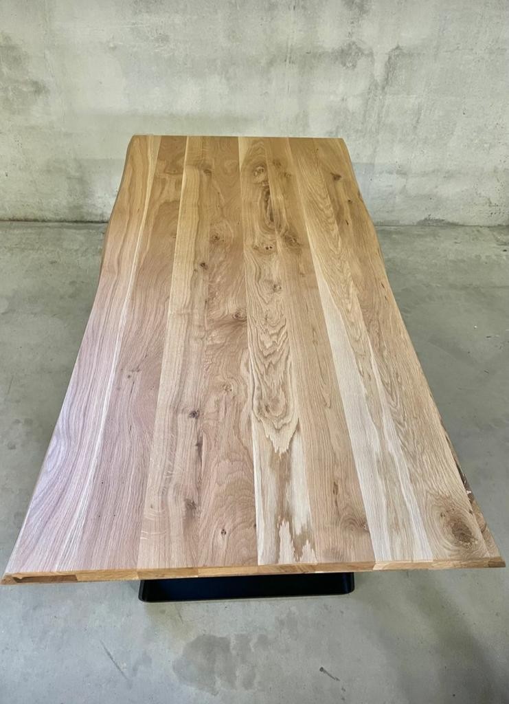 Tavolo Fisso in legno massello con spessore 4 cm e gambe in metallo.