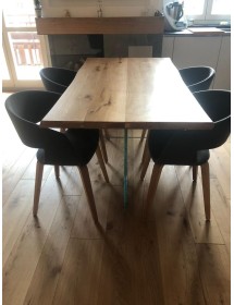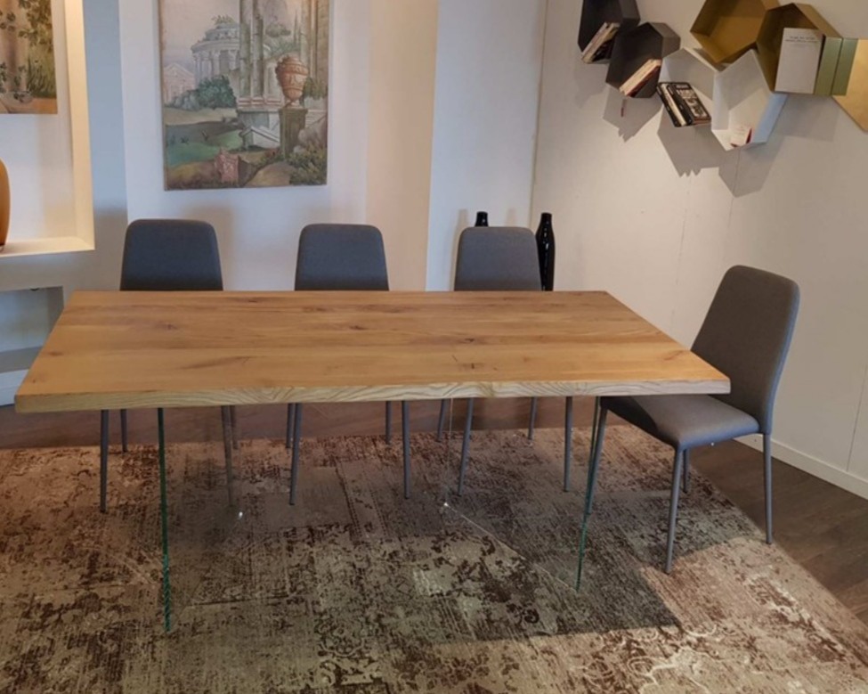 TAVOLO FISSO IN LEGNO ROVERE MASSELLO 160x90 spessore 4 cm E GAMBE IN VETRO (809)