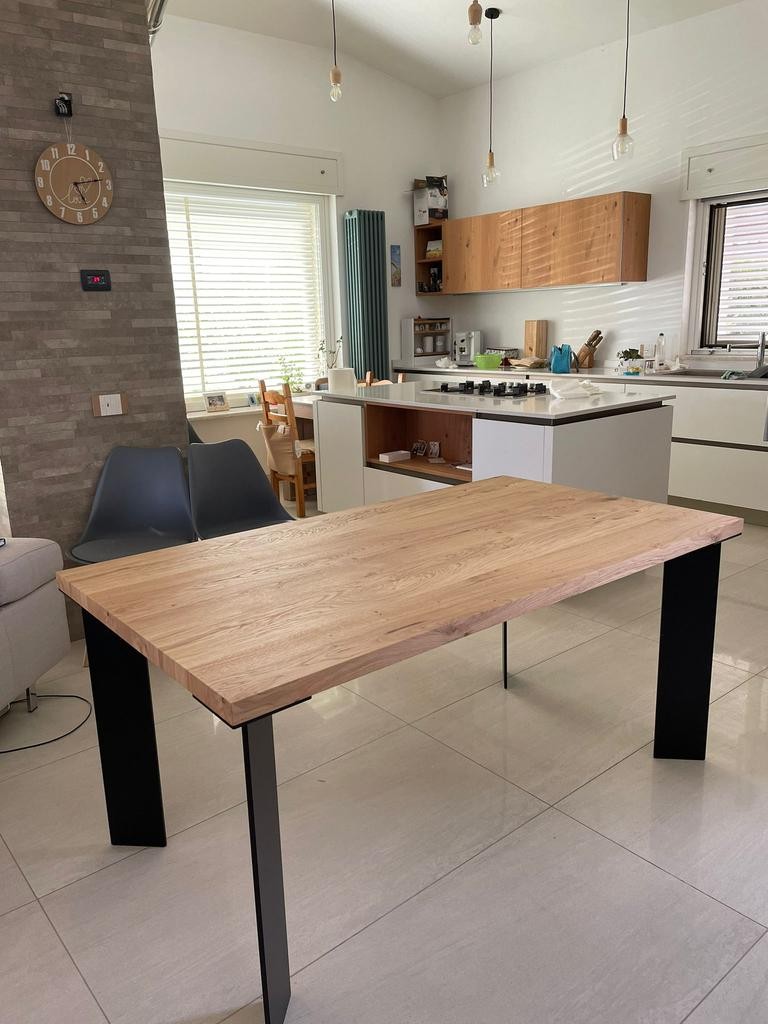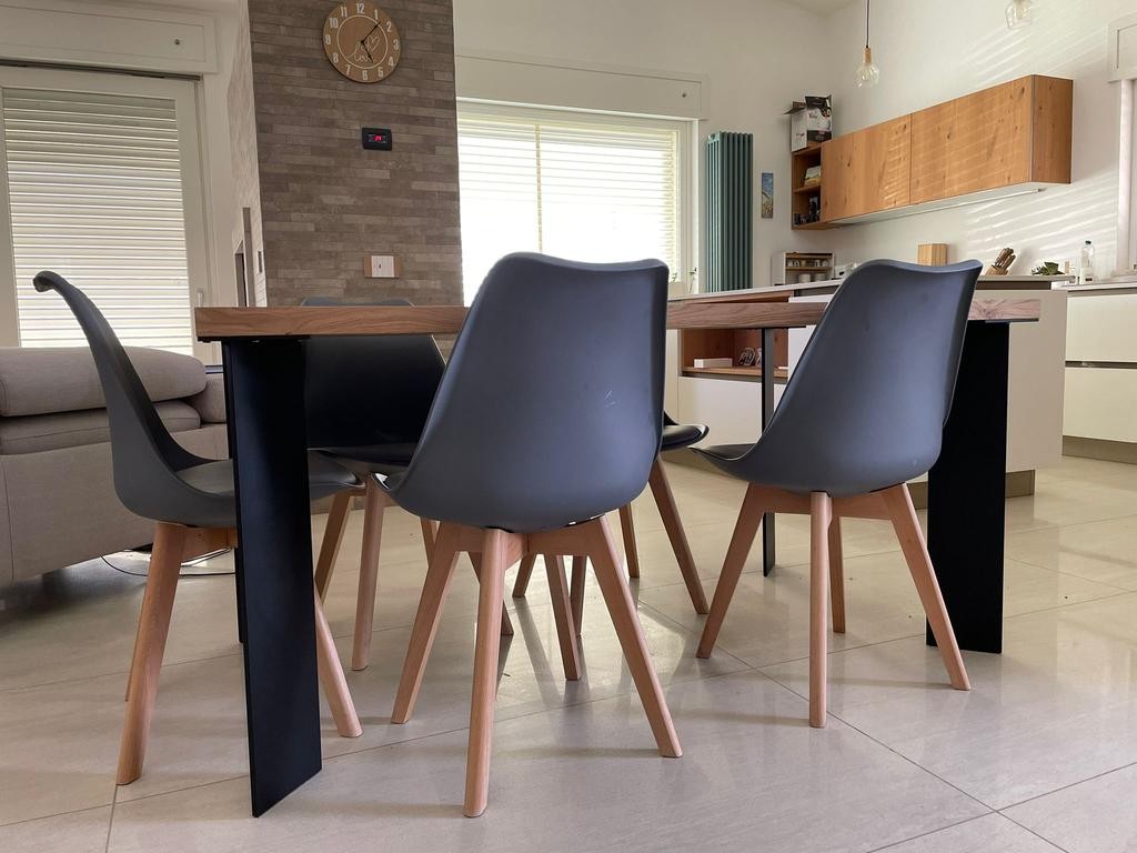 Tavolo Fisso in legno impiallacciato con spessore 4 cm e gambe in ferro.