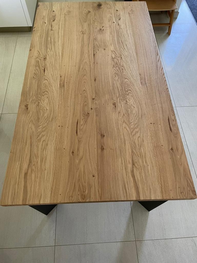 TAVOLO FISSO IN LEGNO ROVERE IMPIALLACCIATO 180x90 h,78 spessore 4 cm E GAMBE IN FERRO