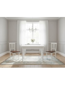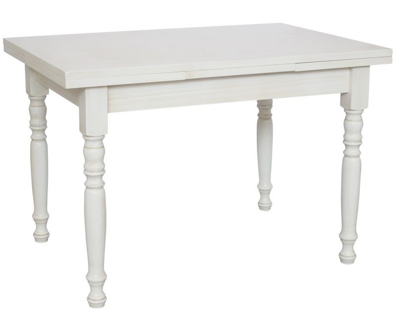 Tavolo costruito in legno massello di pioppo rendendo il mobile solido e robusto. Piano rettangolare con gambe tornite, dotato di due allunghe laterali da 40 cm allungabile con apertura laterale da entrambe i lati, detta anche ' apertura a tiro '. Le allunghe sono riposte sotto il piano pronte all' occorrenza per ospitare numerose persone. Ideale per la zona giorno o per la zona della taverna ospitando amici per il pranzo o per la cena.
