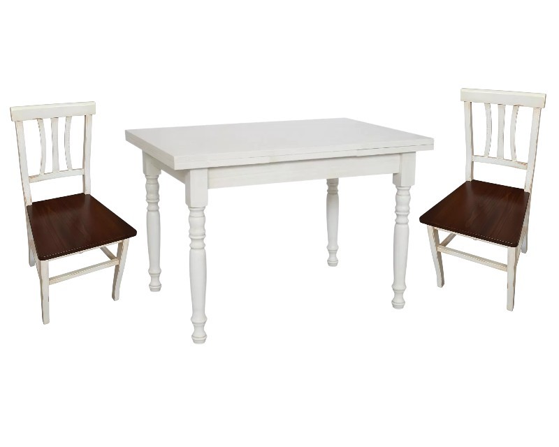 Set tavolo rettangolare shabby bianco anticato 100x70 120x80 140x80 160x85 allungabile con 4/6 sedie seduta legno