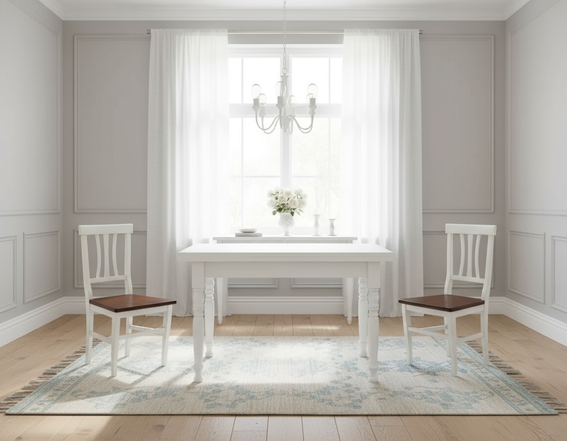 • Set tavolo rettangolare shabby bianco anticato 100x70 120x80 140x80 160x85 allungabile con 4/6 sedie seduta legno