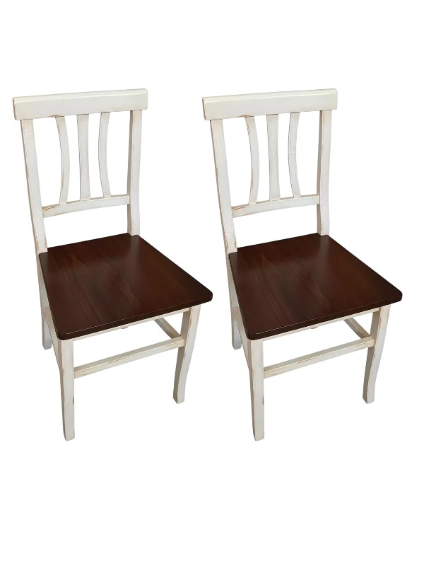 Set 2 sedie shabby bicolore bianco anticato legno seduta legno 43x45x91