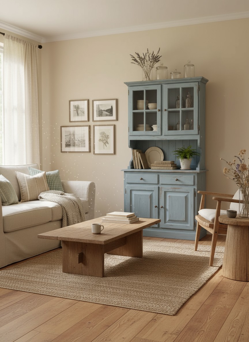 CRISTALLIERA 2 PORTE IN PINO MASSELLO COUNTRY AZZURRO CONSUMATO L.102 P.43 H.195
