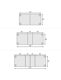 Tavolo allungabile: 2 allunghe da 45 cm ( le allunghe quando non si utilizzano si posso inserire all'interno del tavolo )