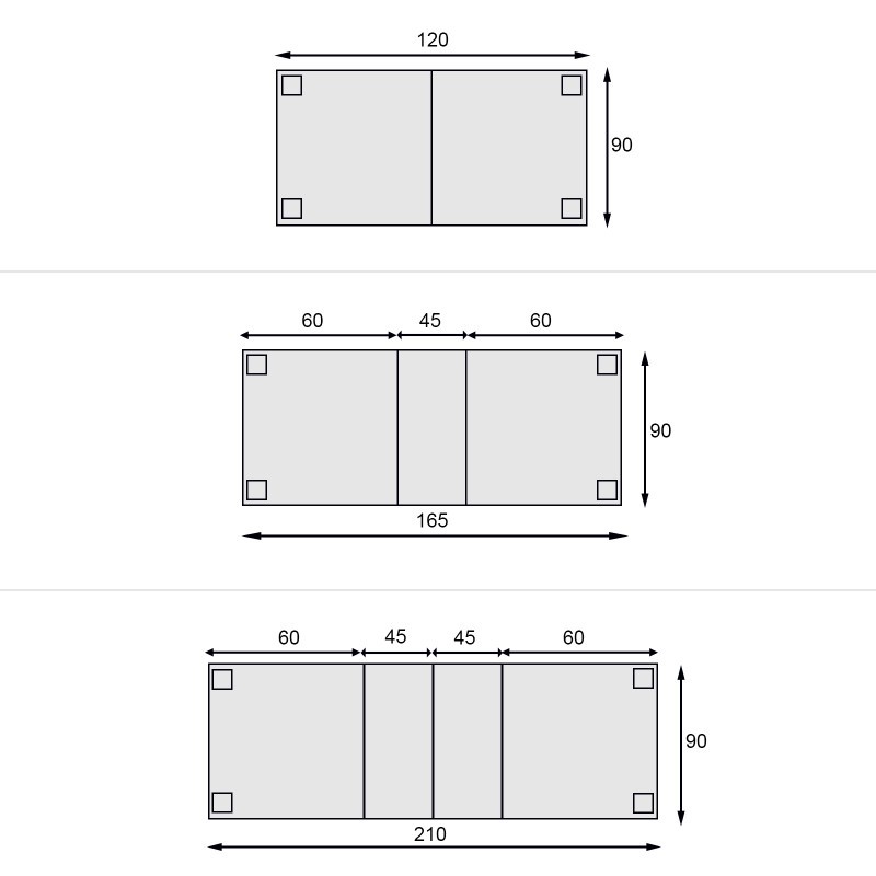 -  Misura aperto con due allunghe cm 210 x 90: spazio per 8 persone