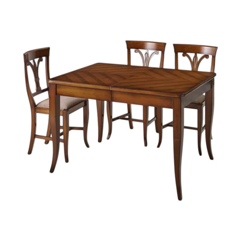 • Set tavolo classico allungabile Legno noce spinapesce 120x90x78 con 4 sedie imbottite