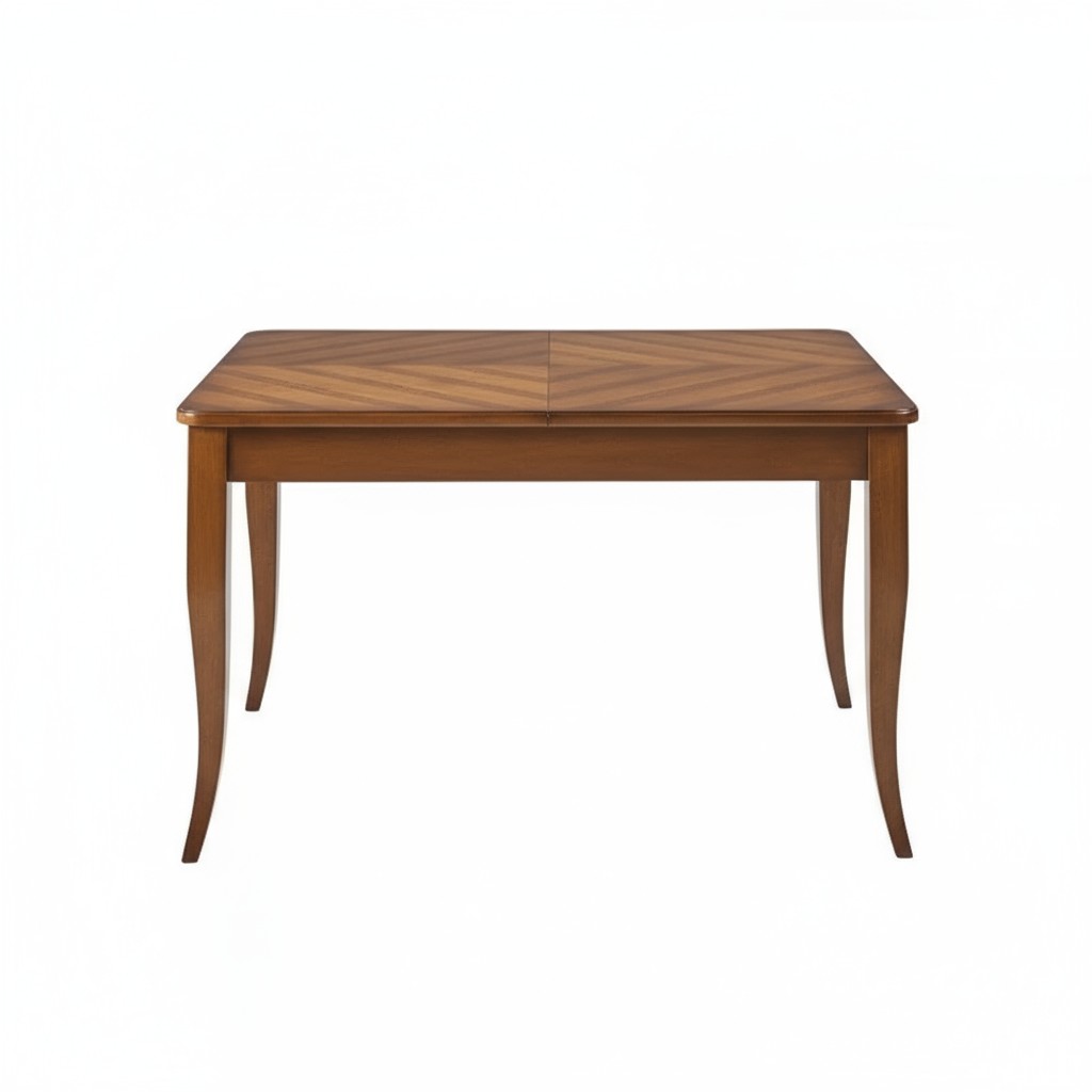 Tavolo rettangolare costruito in legno massello con gambe a sciabola sagomate e piano a spinapesce rendendo il mobile solido e allo stesso tempo elegante. Dotato di due allunghe da 45 cm allungabile con apertura centrale, detta anche 'apertura a scorrimento', le allunghe sono riposte sotto il piano. Ideale per il soggiorno e la cucina , un must intramontabile destinato a durare nel tempo e fuori dalle mode del presente.
