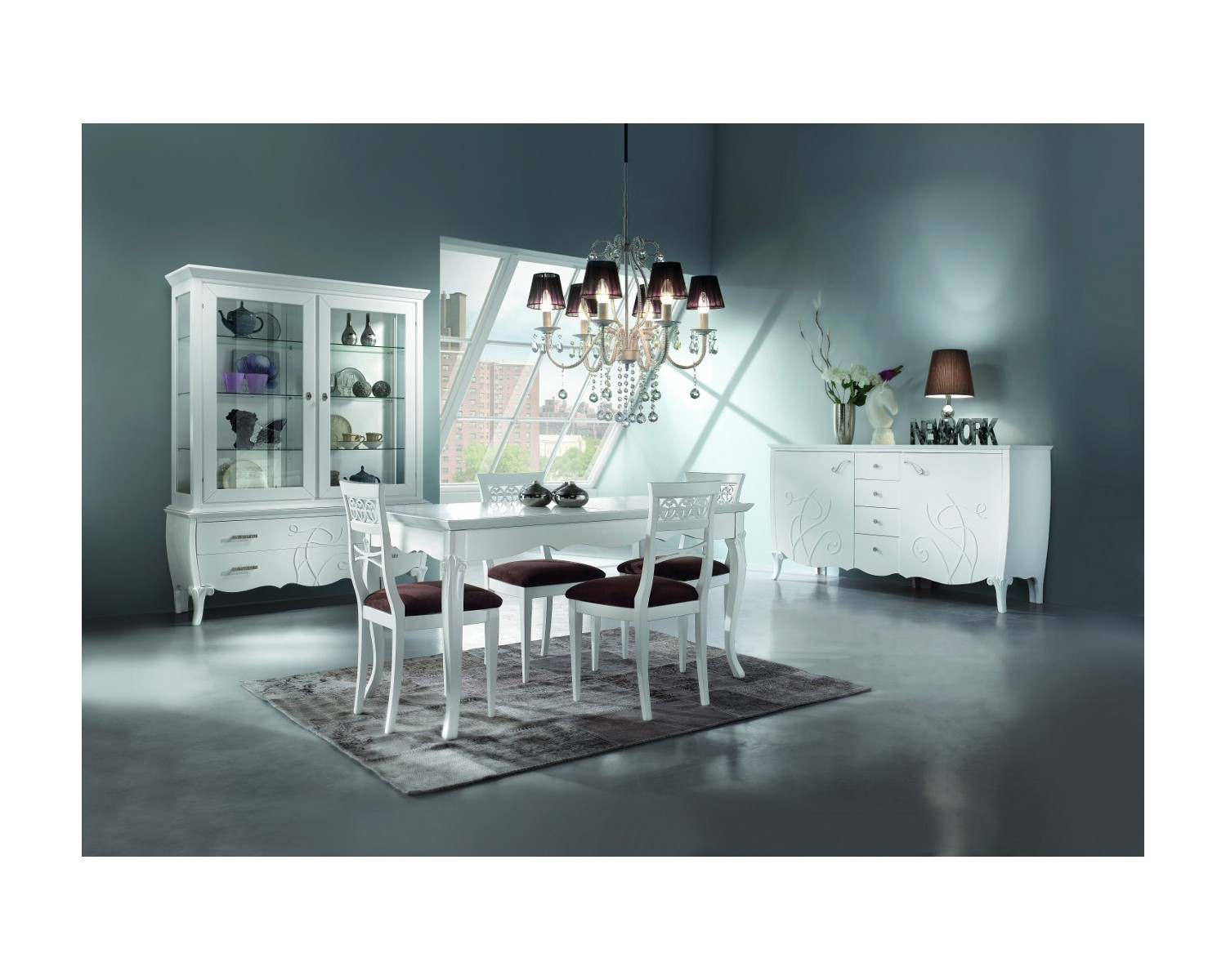 Cristalliera 2 porte 2 cassetti legno shabby bianco decori rilievo 161X54X217