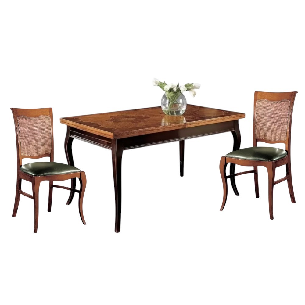 • Set tavolo allungabile legno shabby intarsiato 160X90x78 con 6 sedie