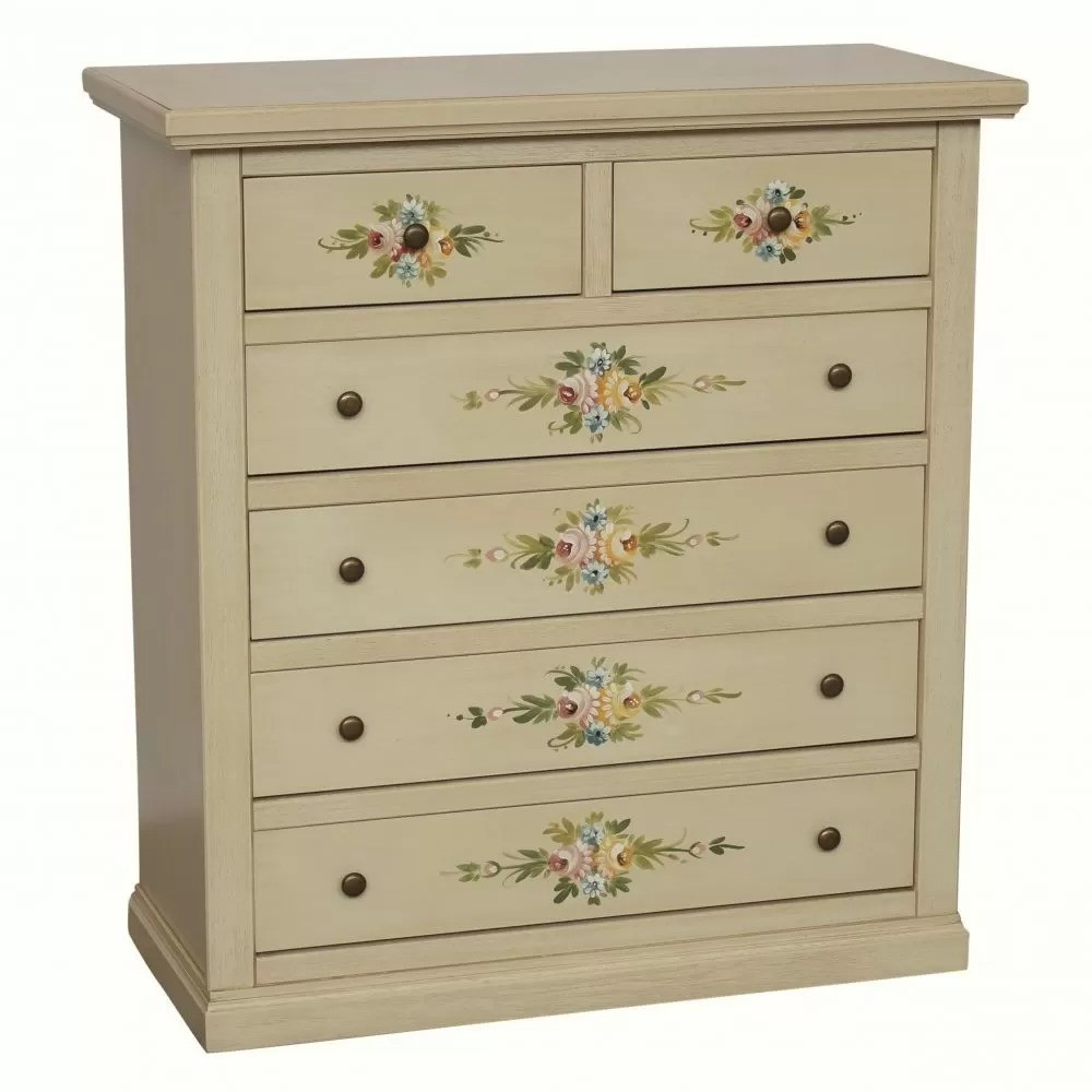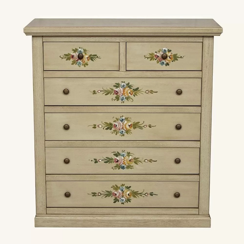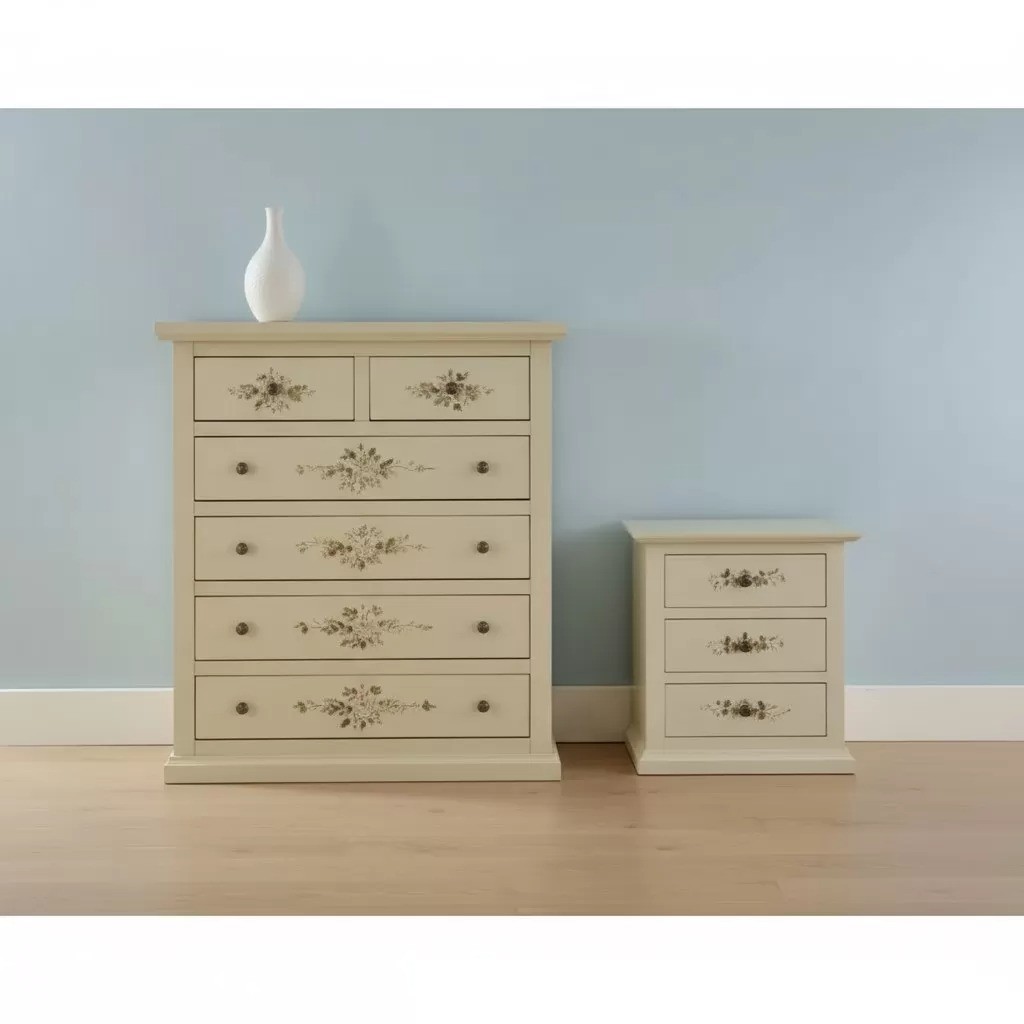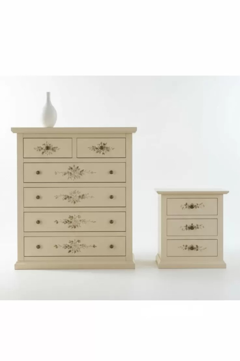 Gruppo 1 Cassettiera 2 Comodini legno shabby avorio anticato decorato