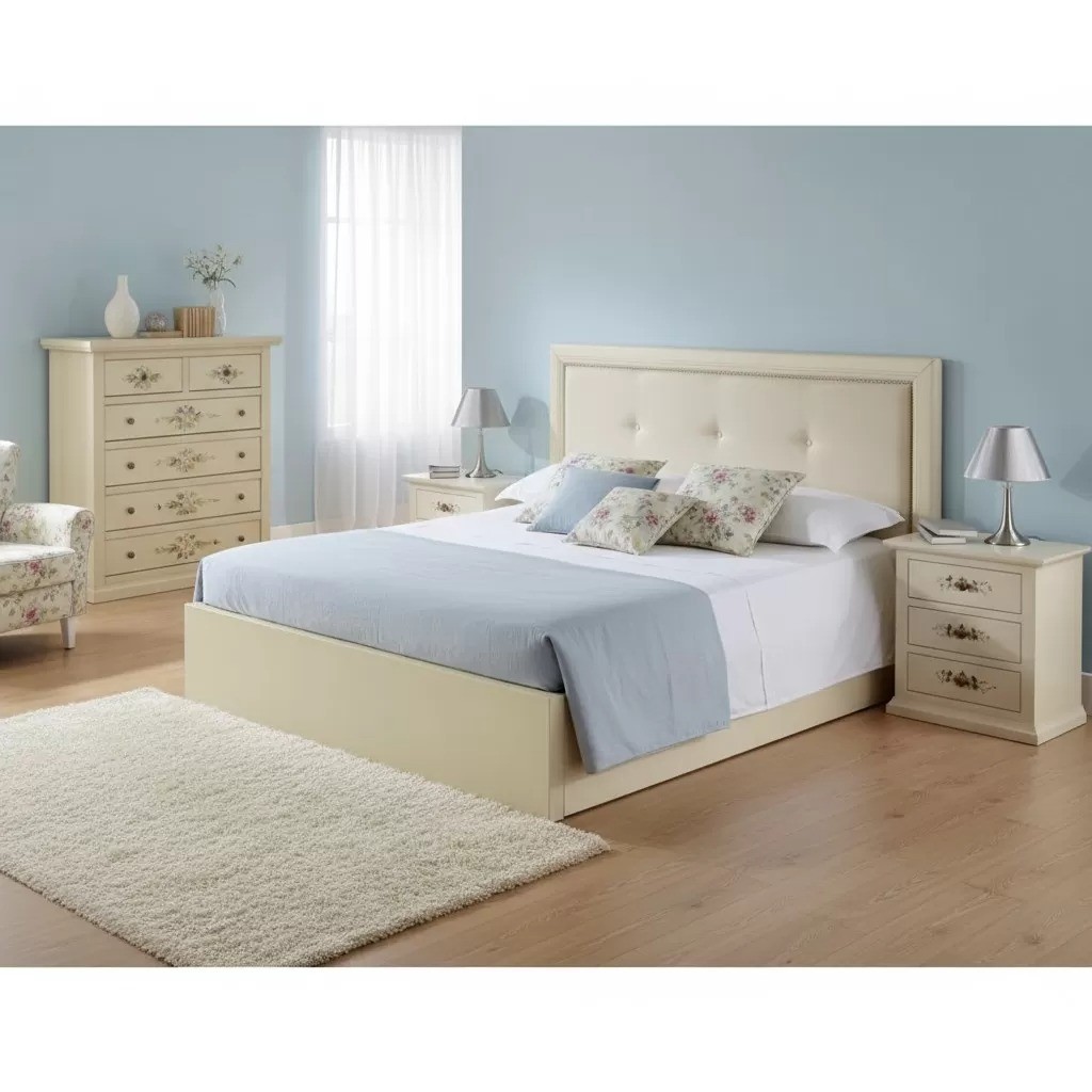 Comodino 3 cassetti legno shabby avorio anticato decori 60x35x64