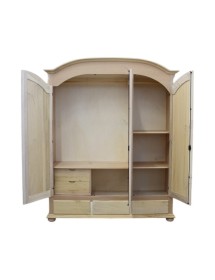 Descrizione: Armadio 3 ante e 2 cassetti così suddiviso: All'interno delle due ante, asta appendiabito, mensola e sottostante un vano con cassettiera. All'interno dell'anta singola, asta appendiabito e due mensole.