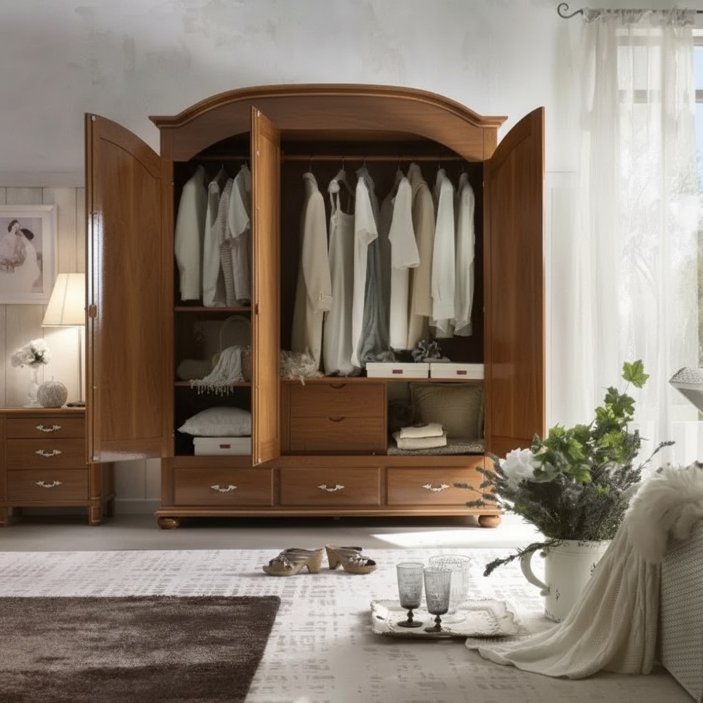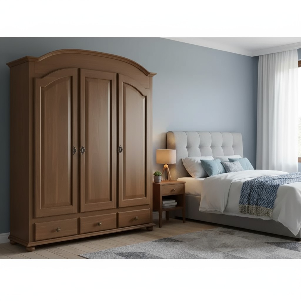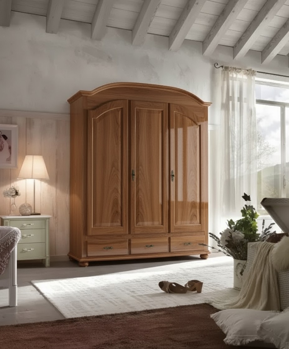 Armadio classico 3 ante 3 cassetti legno tinta noce 181x61x224