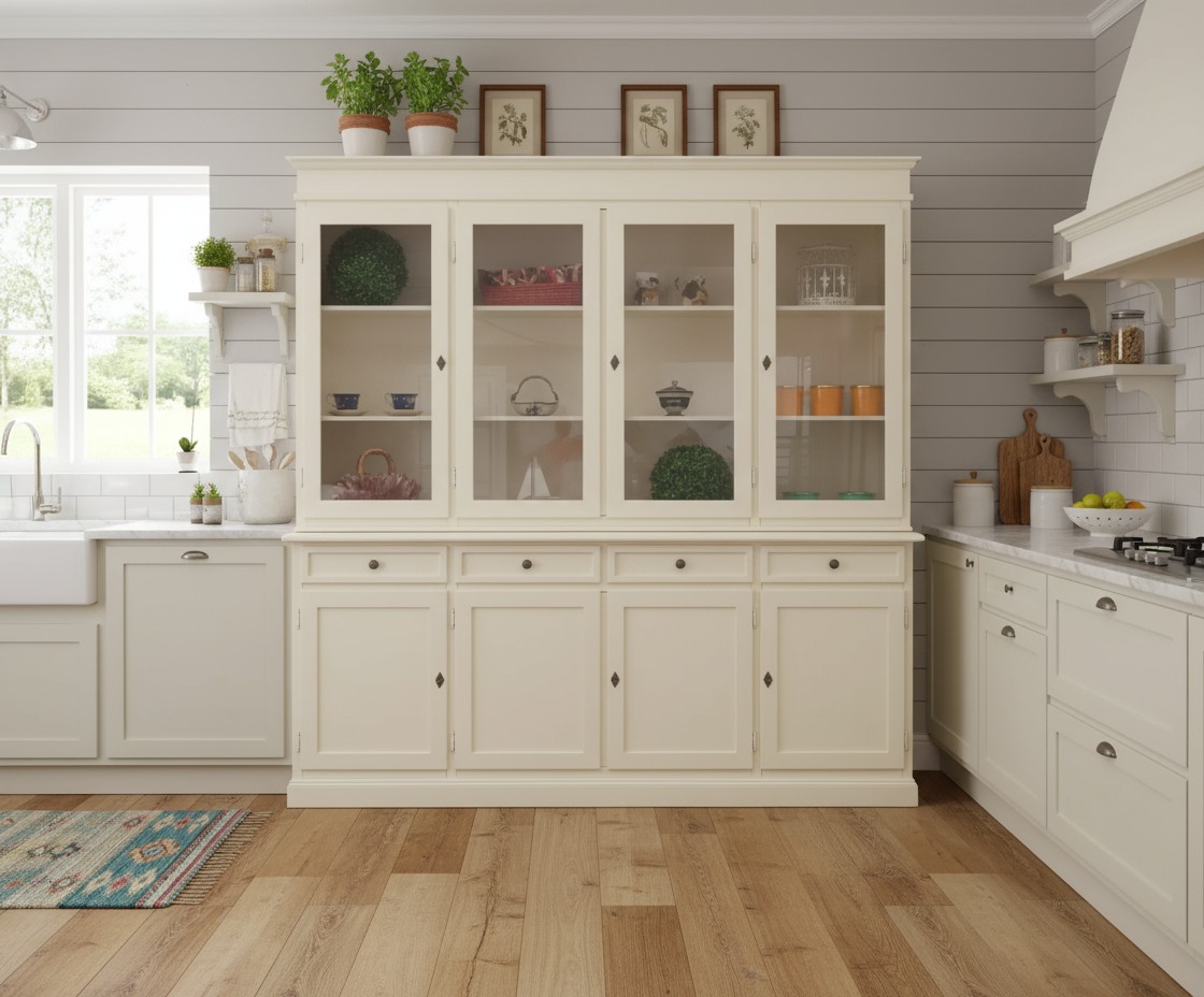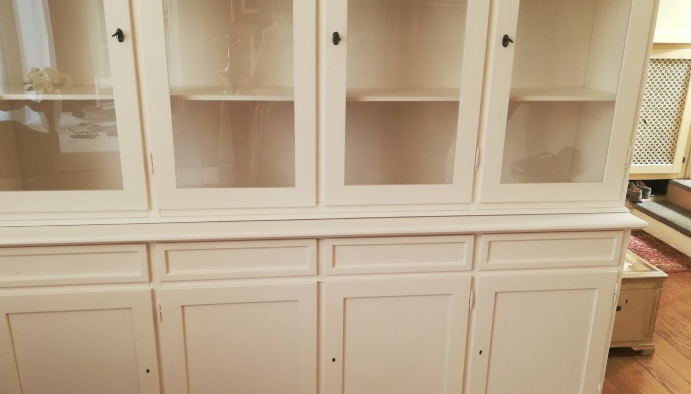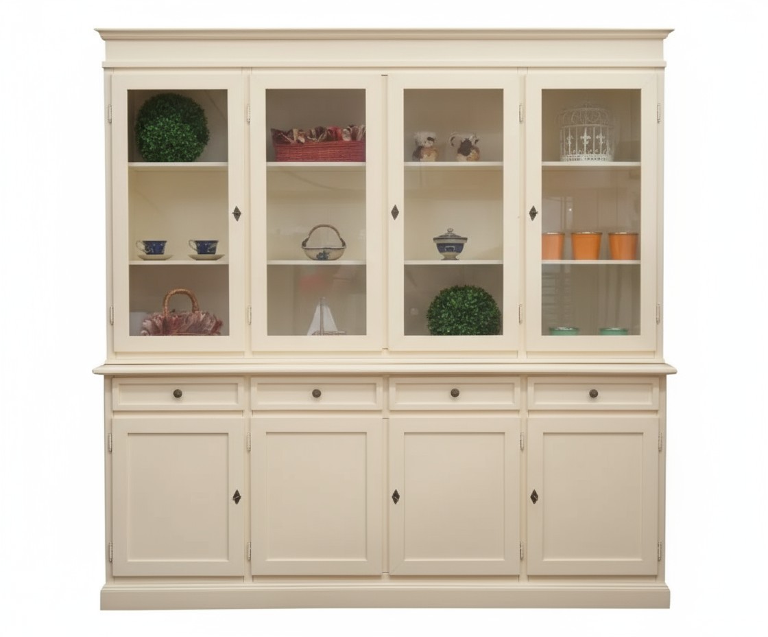 Cristalliera classica 4 porte legno shabby avorio 205X42X205