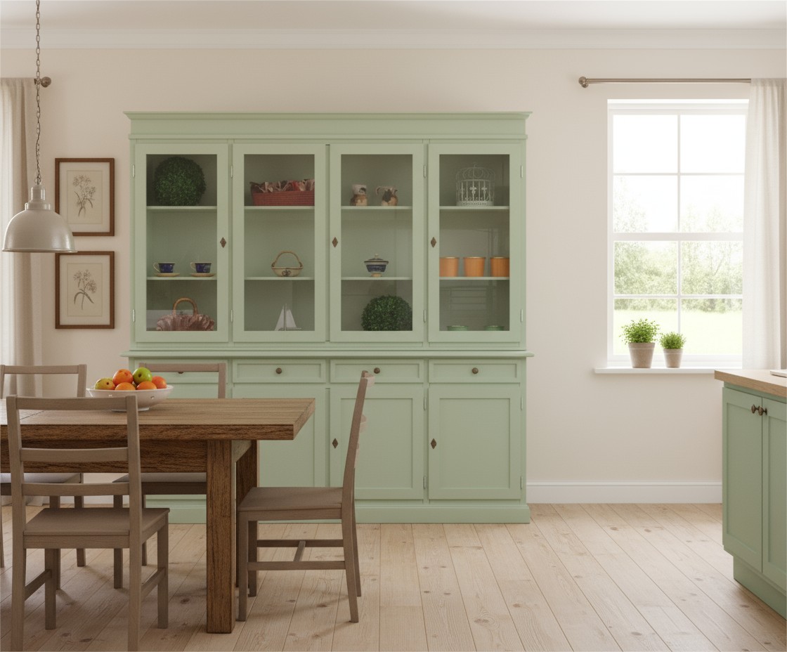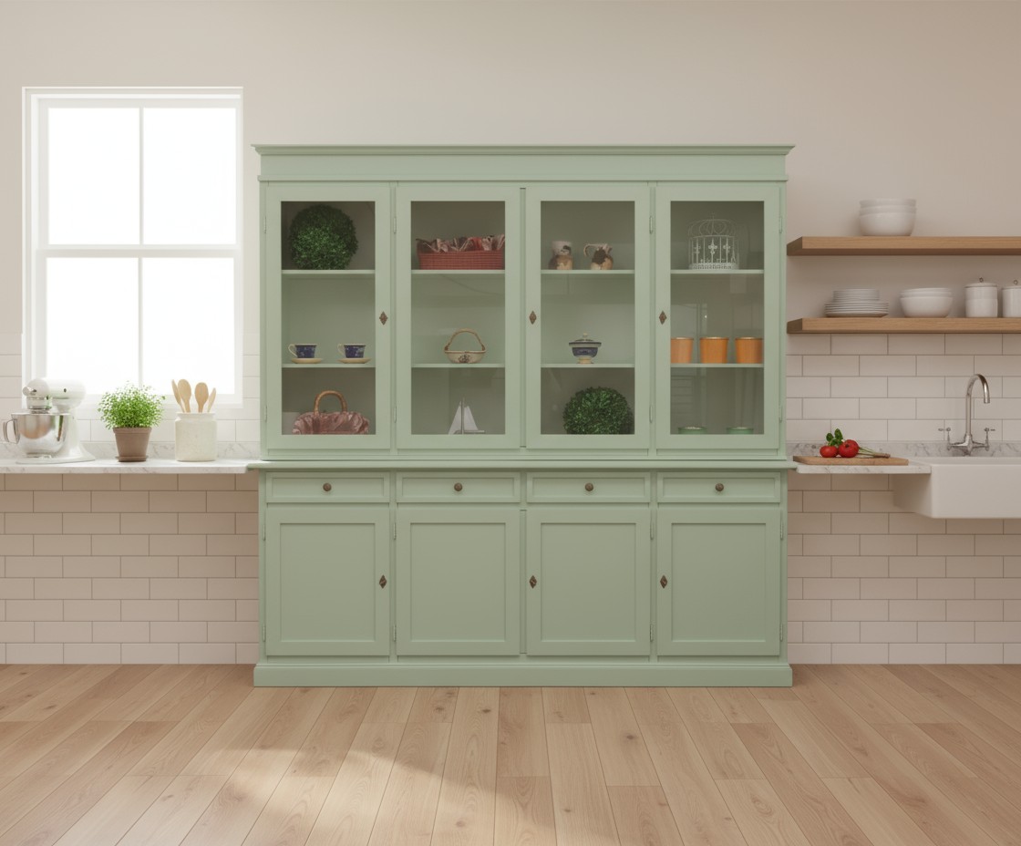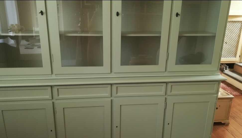 Cristalliera classica 4 porte 4 cassetti legno shabby verde salvia 205X42X205