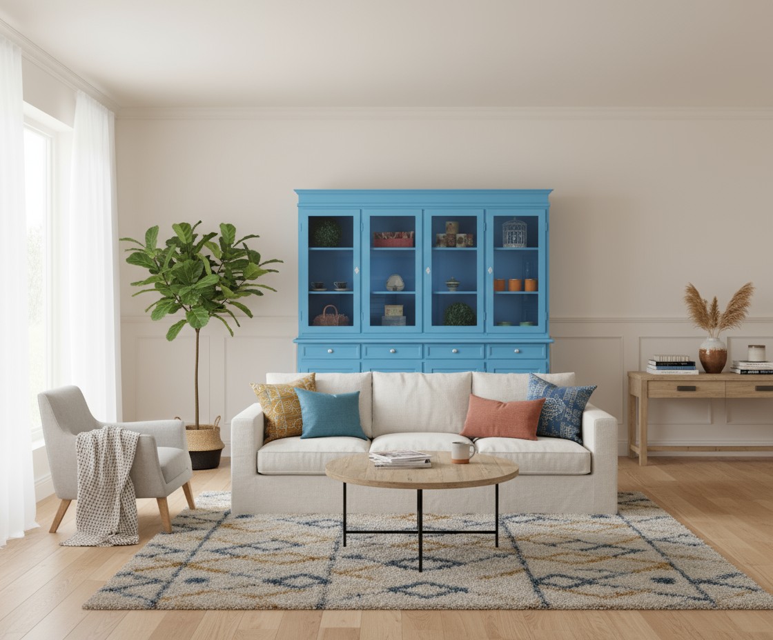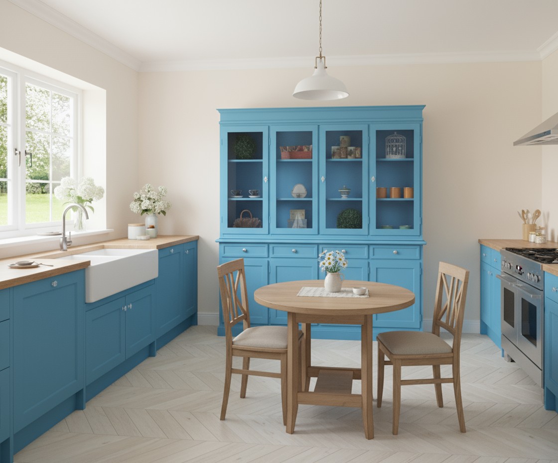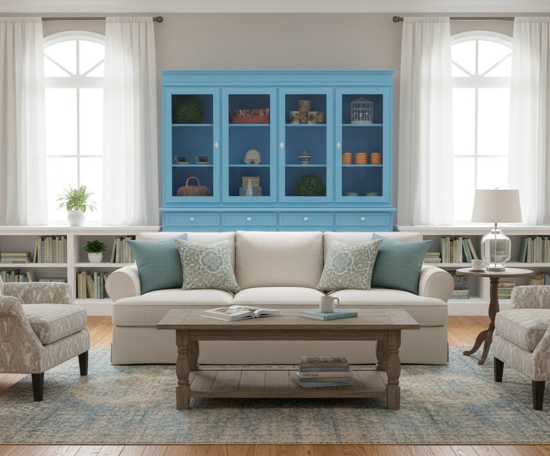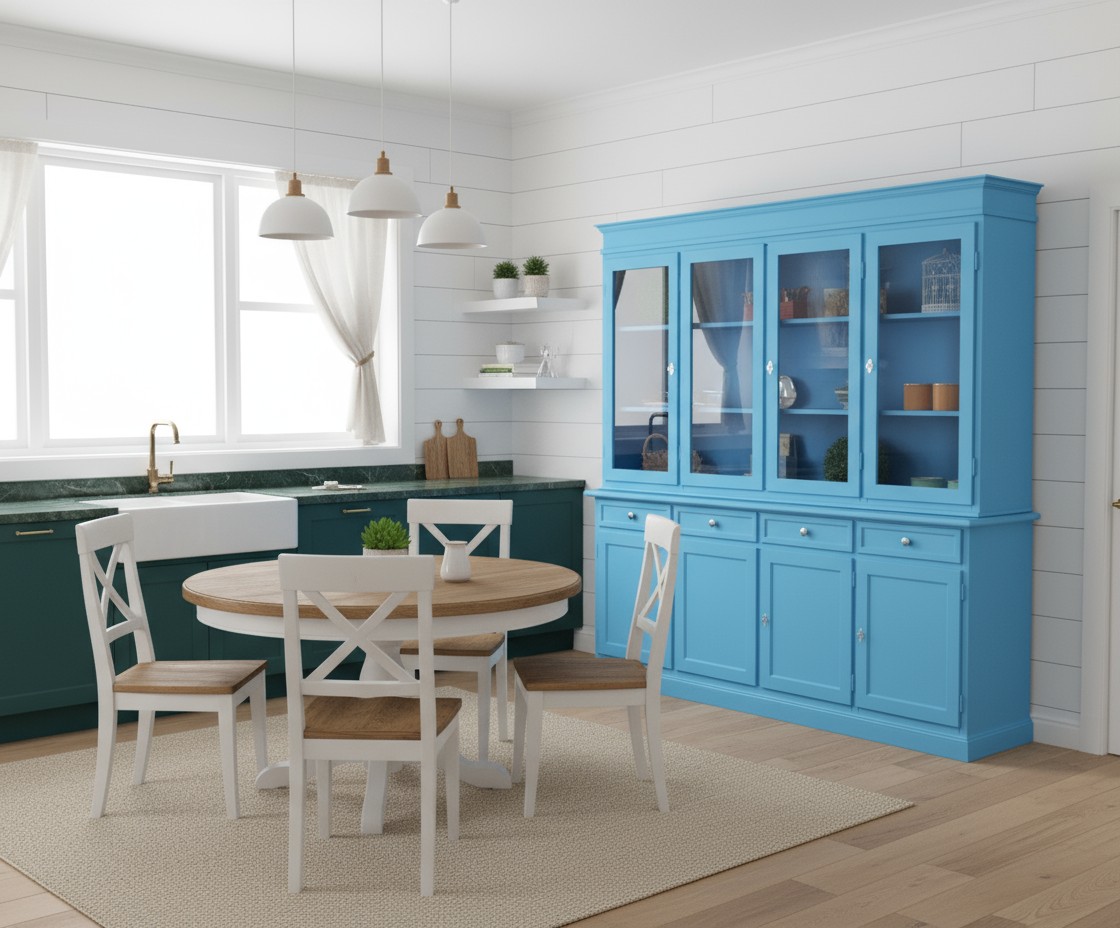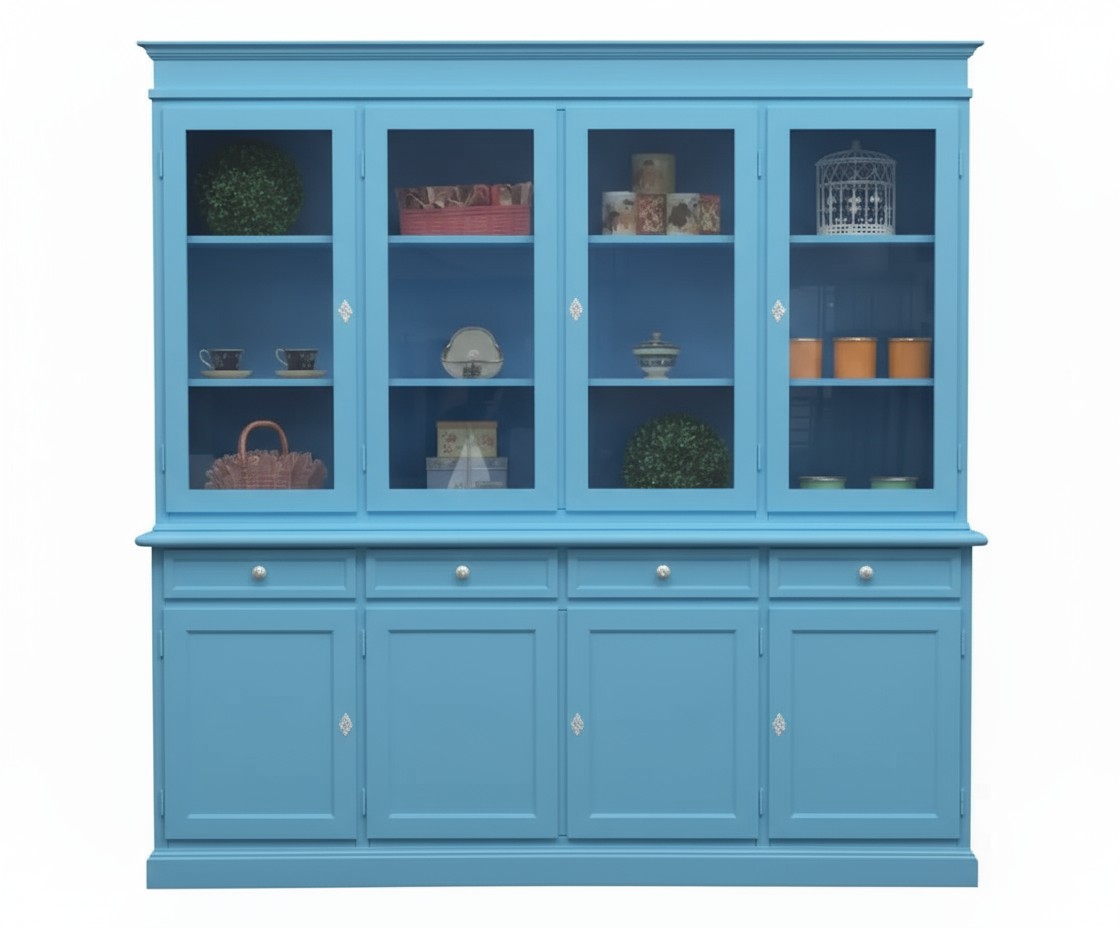 Cristalliera shabby 4 porte 4 cassetti legno azzurro 205X42X205