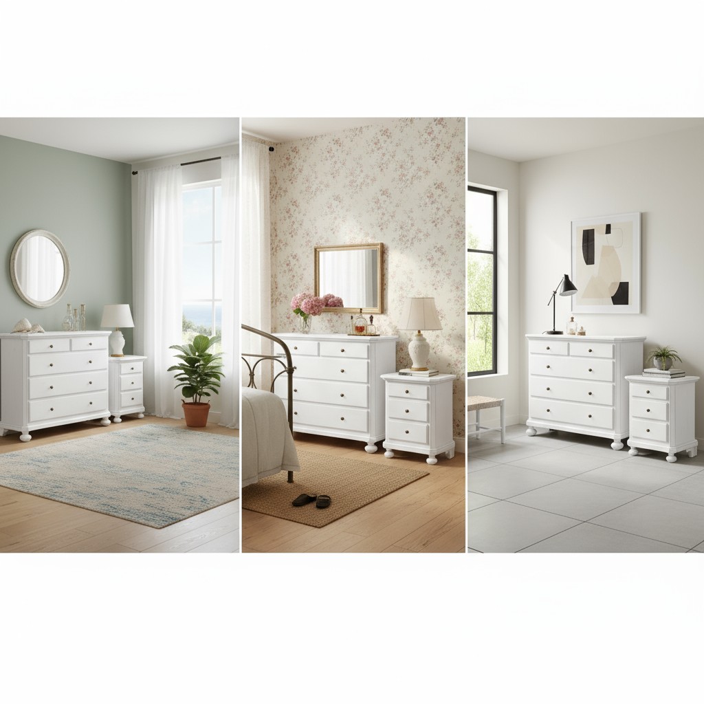Gruppo 1 Cassettiera 2 Comodini legno arte povera bianco