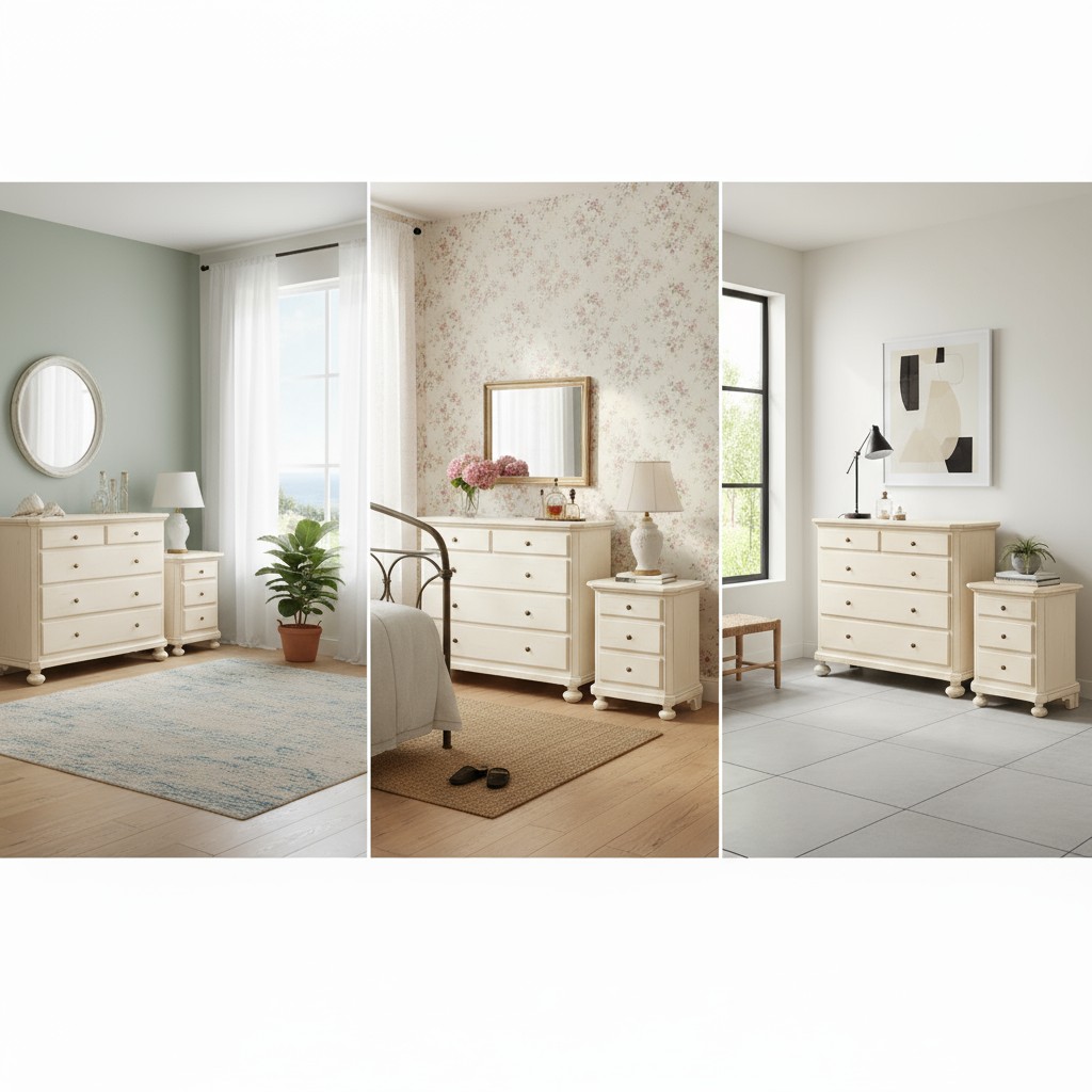 Gruppo 1 Cassettiera 2 Comodini legno arte povera avorio