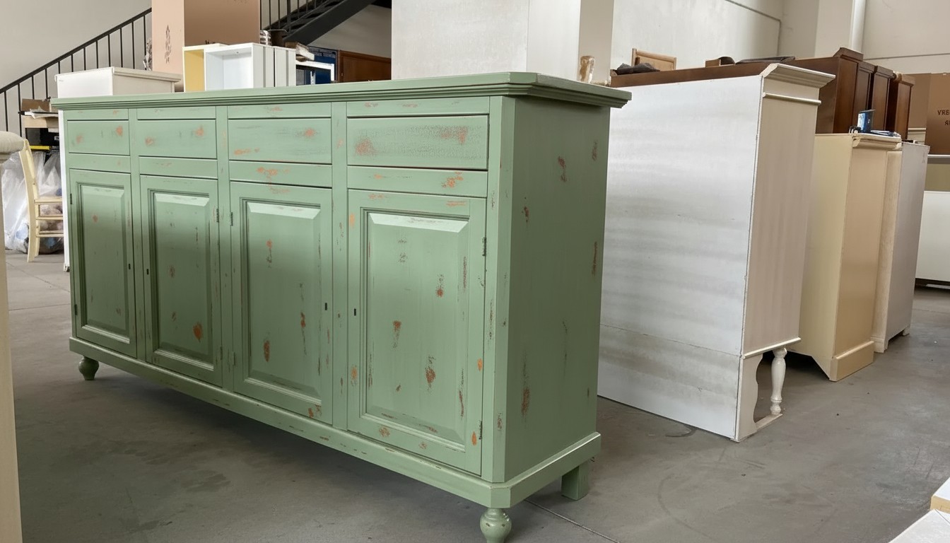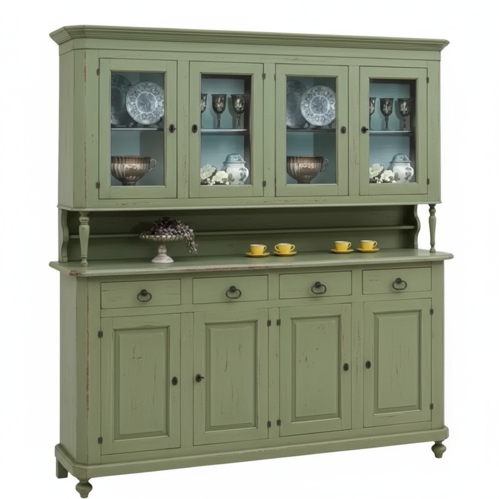 Cristalliera 4 porte legno shabby verde salvia consumato 196X43X208