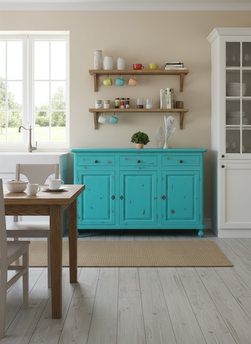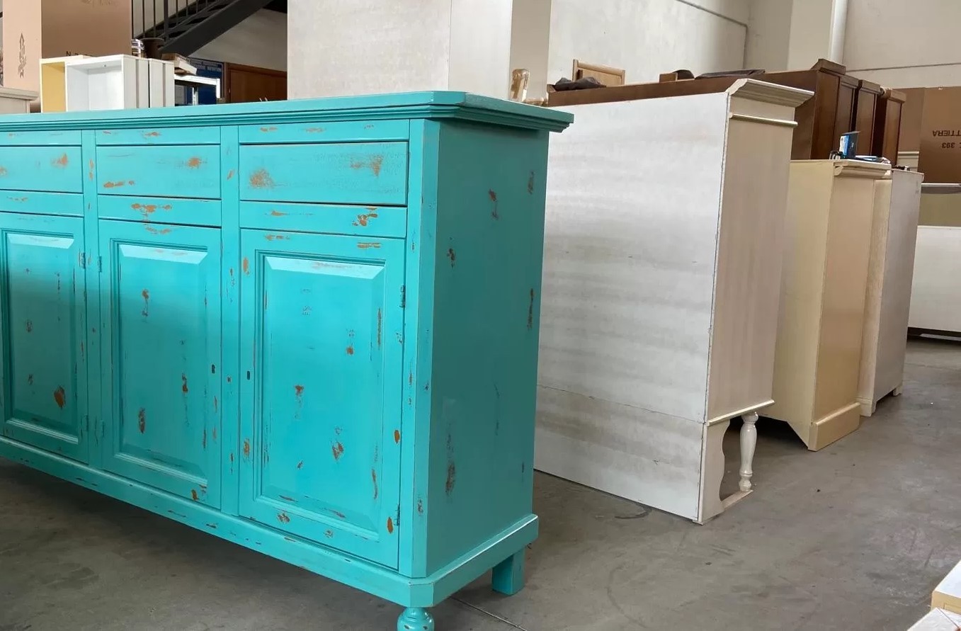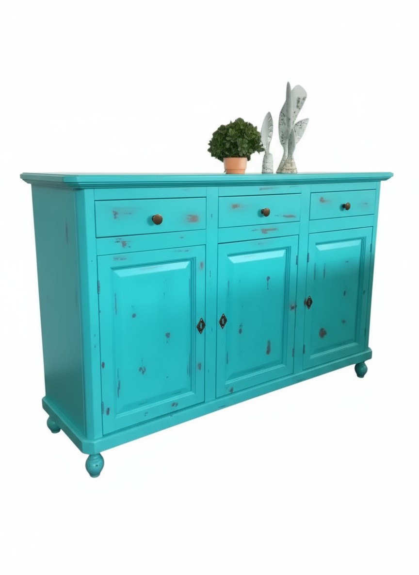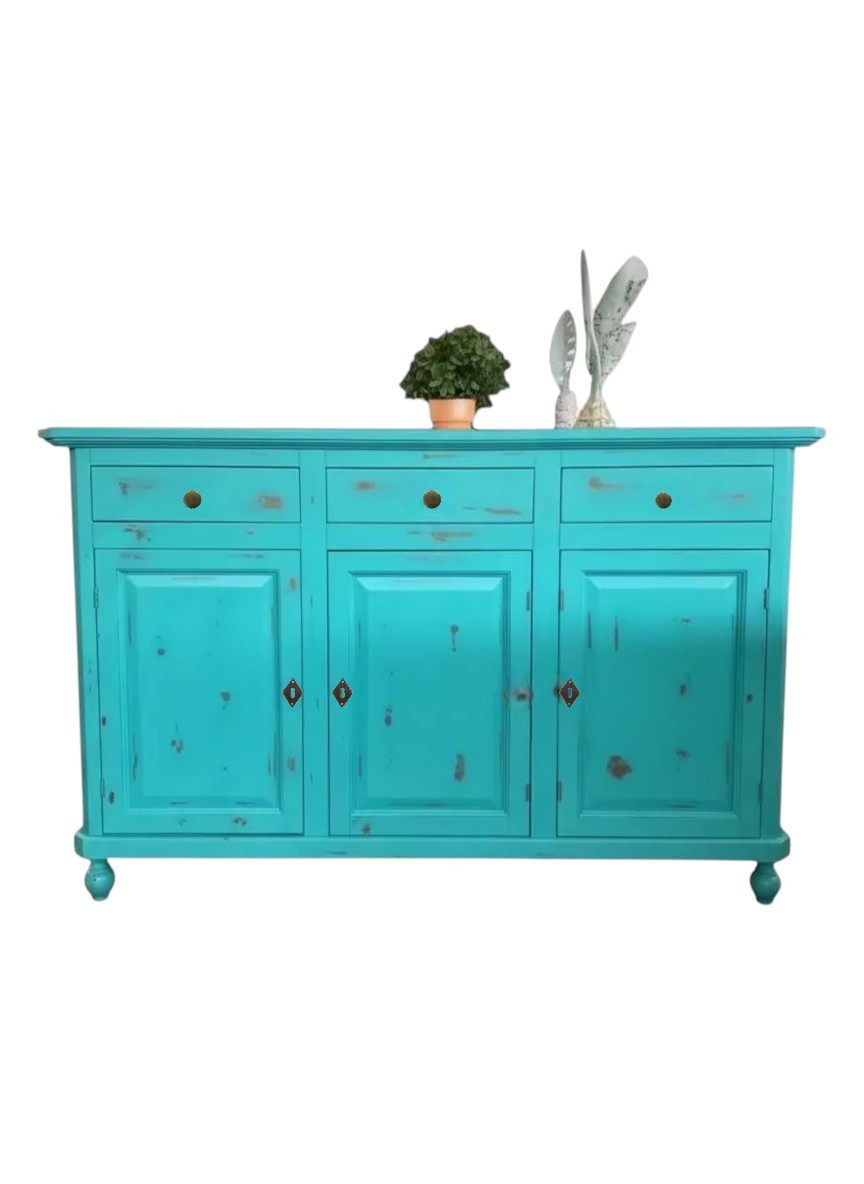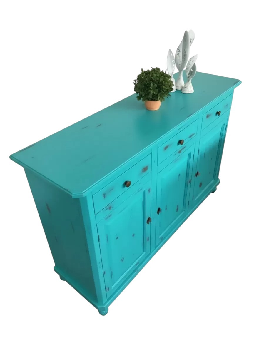 Madia credenza 3 porte legno shabby azzurro consumato 158X47X98