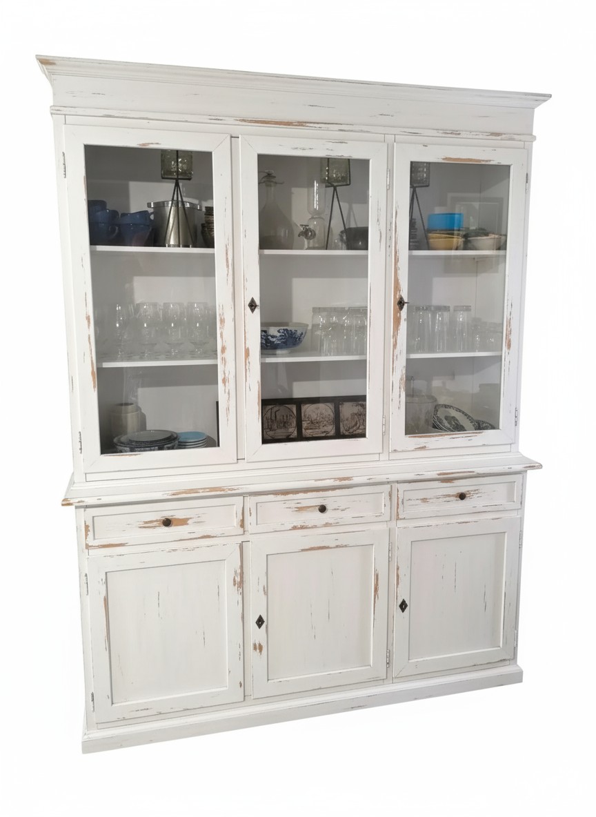 Cristalliera 3 porte legno shabby bianco consumato 156X42X205