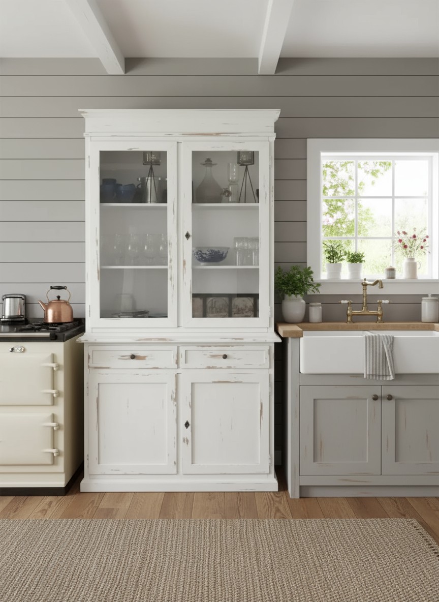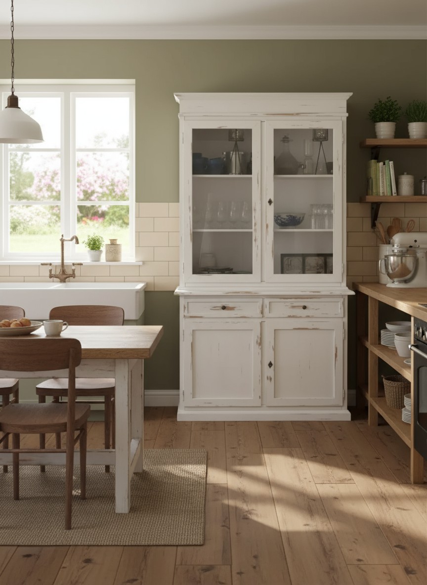 Cristalliera in stile shabby elegante e con proporzioni perfette per qualsiasi stanza, adatta per contenere al suo interno stoviglie : bicchieri , piatti , tazze e servizi da the o caffè risaltando tutto quanto esposto sui ripiani. Elemento d' arredo adatto per salotti e nelle cucine, esteticamente appagante e allo stesso tempo funzionale e spazioso.